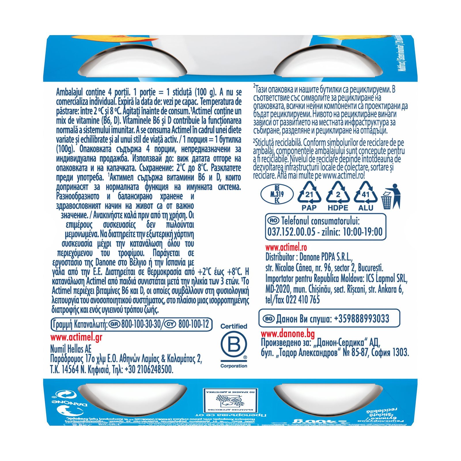 DANONE Actimel Immune System Ρόφημα Γιαουρτιού Διάφορα Φρούτα 4x100g