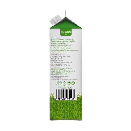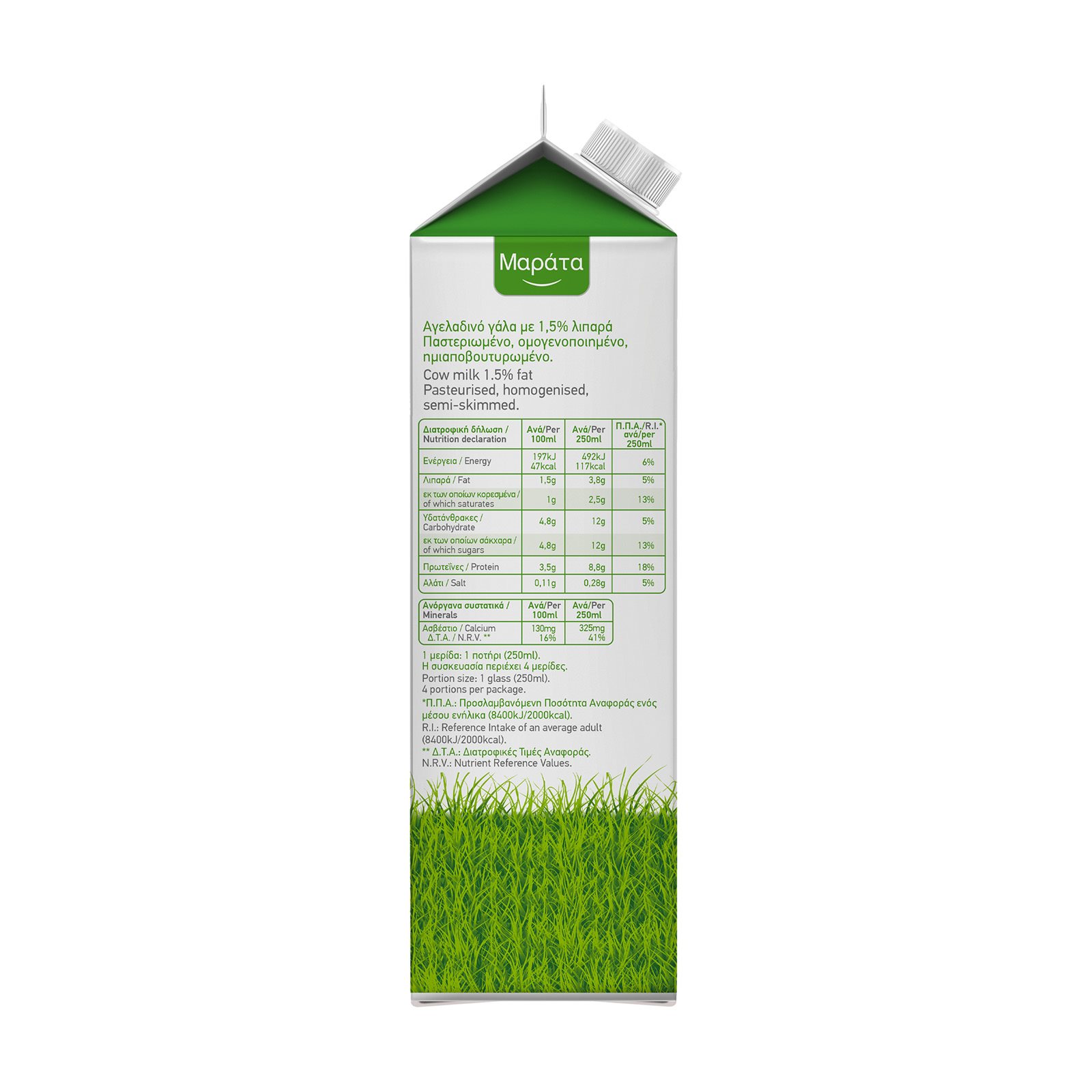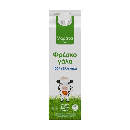 Ελληνικό αγελαδινό παστεριωμένο, ομογενοποιημένο, ημιαποβουτυρωμένο ΓΑΛΑ 7 ημερών με 1,5% λιπαρά.