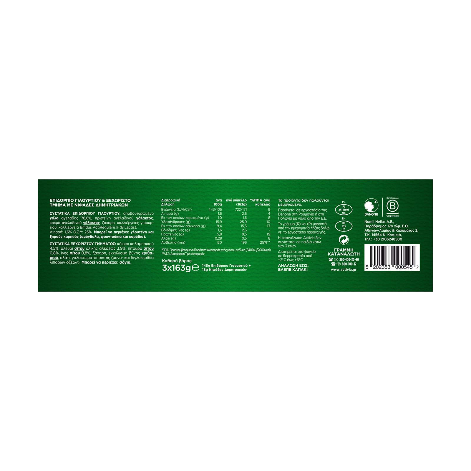 ACTIVIA Fiber Mix&Go Επιδόρπιο Γιαουρτιού & Νιφάδες Δημητριακών 3x163g