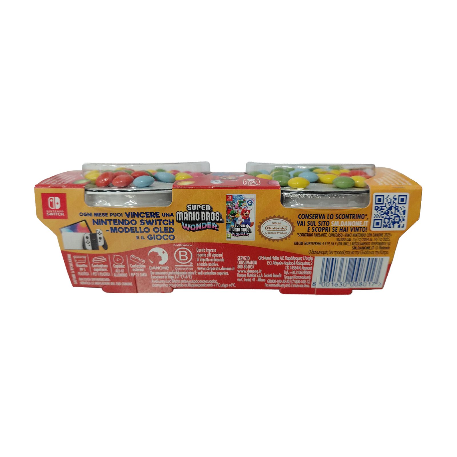 Ξεχωριστό τμήμα με χρωματιστά σοκολατένια κουφετάκια: Ζάχαρη, βούτυρο κακάο, πλήρες ΓΑΛΑ σε σκόνη, αποβουτυρωμένο κακάο σε σκόνη, άμυλο, αποβουτυρωμένο ΓΑΛΑ σε σκόνη, ορός ΓΑΛΑΚΤΟΣ σε σκόνη, γαλακτωματοποιητής: λεκιθίνες, υλικά γλασσαρίσματος: αραβικό κόμμι, καρναουβικός κηρός, κηρός μέλισσας, χρωστικές ουσίες: β- καροτένιο, κουρκουμίνη, κοχενίλη, σύμπλοκα χλωροφυλλών και χλωροφυλλινών με χαλκό, συμπυκνωμένο εκχύλισμα από θαλάσσια φύκια.