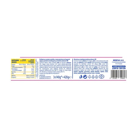 Λιπαρά: 3%, Ολικά στερεά: 25%.