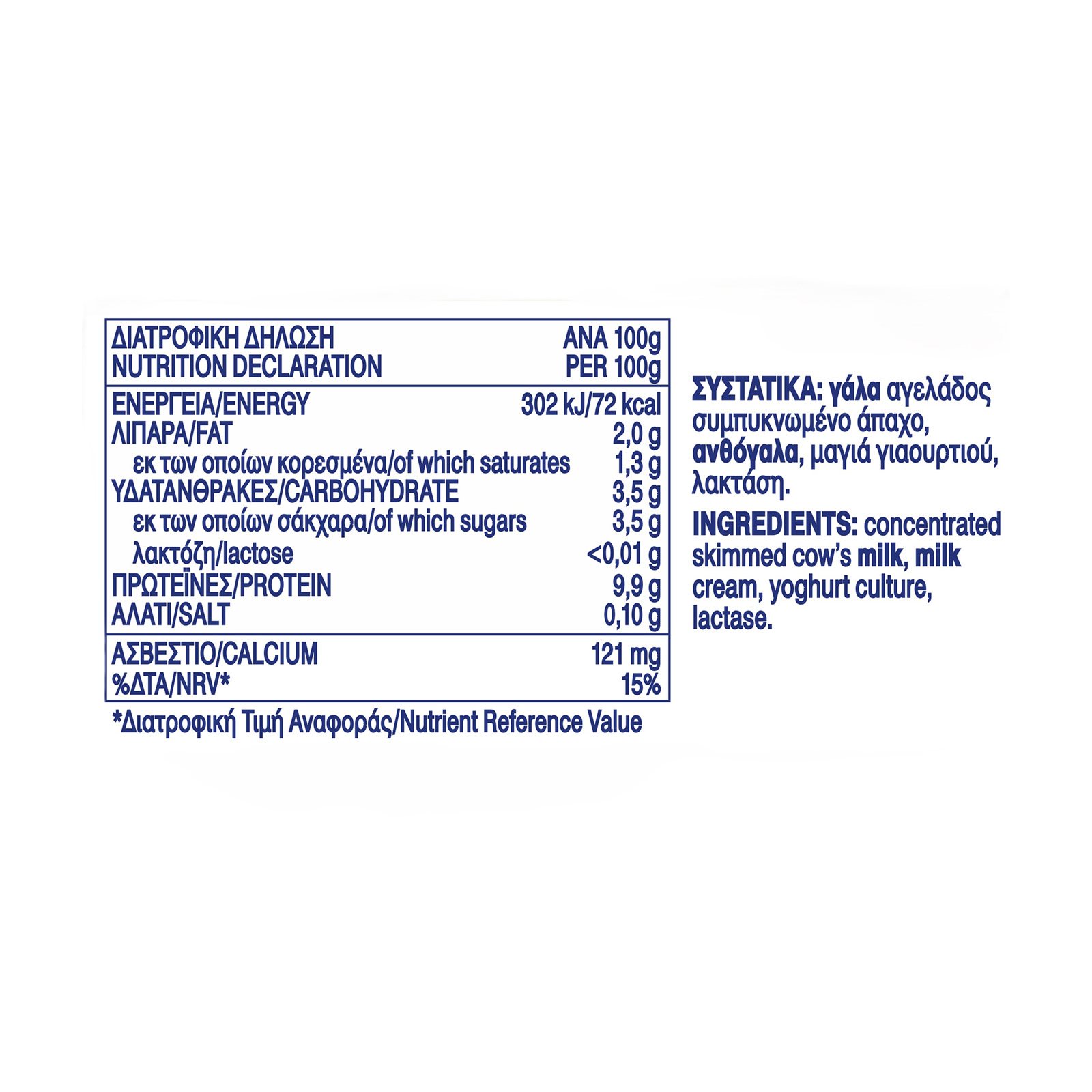 Στραγγιστό γιαούρτι αγελάδος, χωρίς λακτόζη, με 2% λιπαρά.