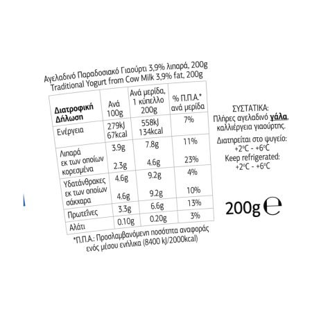 Αγελαδινό παραδοσιακό γιαούρτι 3,9% λιπαρά.