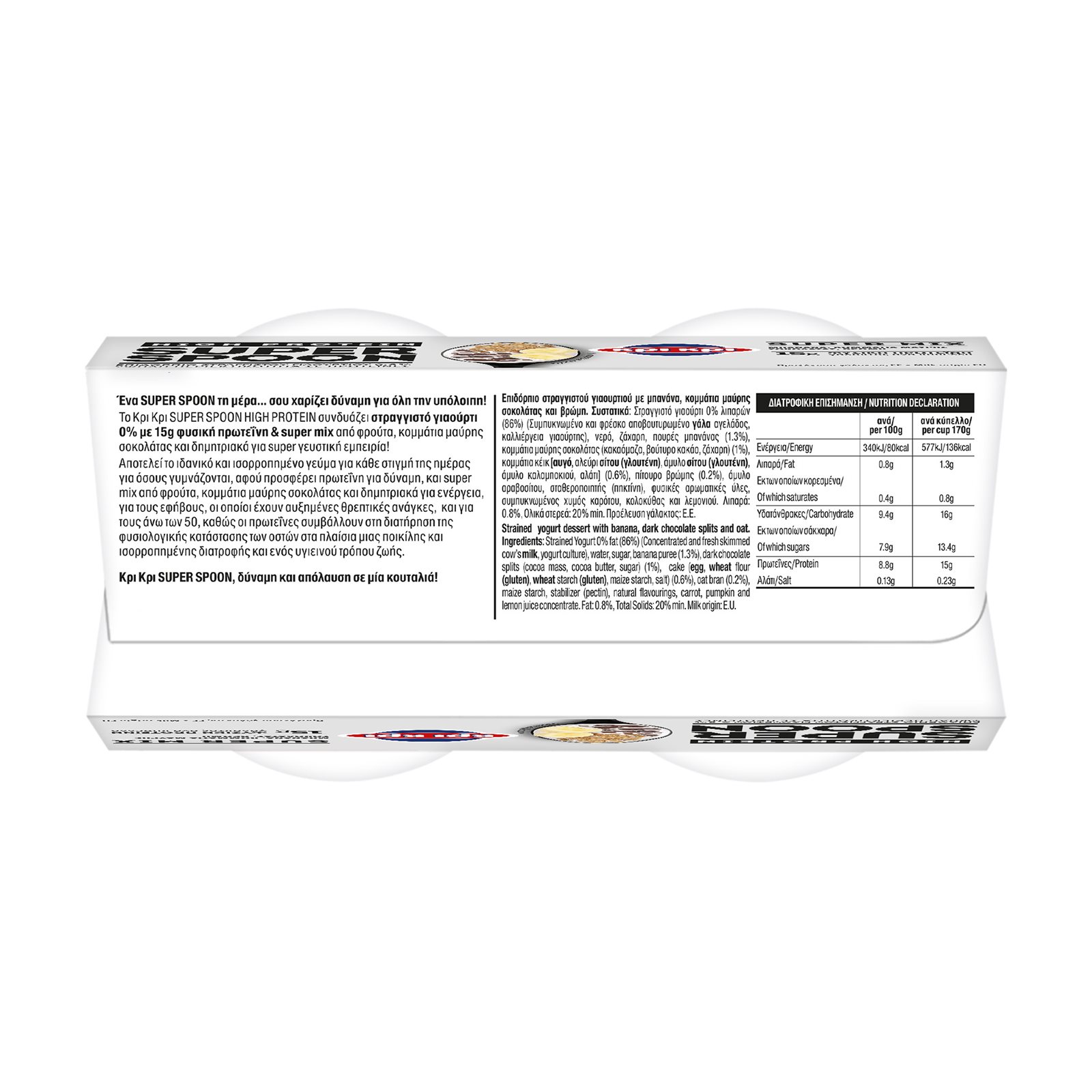 ΚΡΙ ΚΡΙ Superspoon High Protein Επιδόρπιο Στραγγιστού Γιαουρτιού Μπανάνα Βρώμη & Μαύρη Σοκολάτα 2x170g
