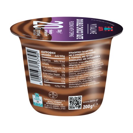 ΔΕΛΤΑ Vitaline Protein Πουτίγκα με γεύση Διπλή Σοκολάτα Χωρίς γλουτένη Χωρίς λακτόζη Χωρίς προσθήκη ζάχαρης 200g