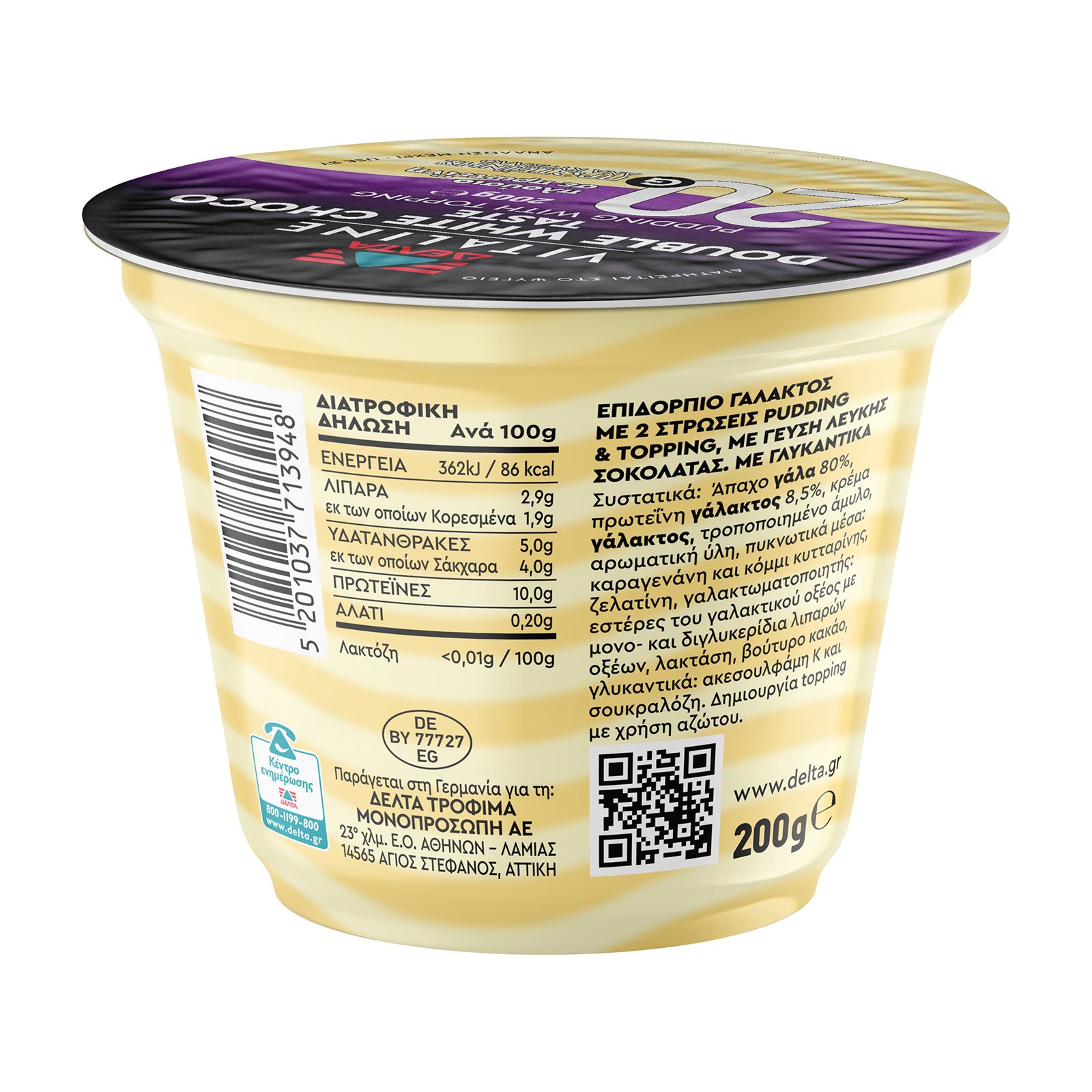Άπαχο ΓΑΛΑ 80%, πρωτεΐνη ΓΑΛΑΚΤΟΣ 8,5%, κρέμα ΓΑΛΑΚΤΟΣ, τροποποιημένο άμυλο, αρωματική ύλη, πυκνωτικά μέσα: καραγενάνη και κόμμι κυτταρίνης, ζελατίνη, γαλακτωματοποιητής: εστέρες του γαλακτικού οξέος με μονο- και διγλυκερίδια λιπαρών οξέων, λακτάση, βούτυρο κακάο, γλυκαντικά: ακεσουλφάμη Κ και σουκραλόζη.