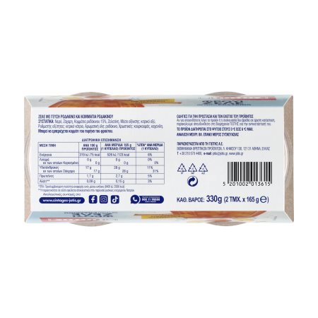 | Ανά 100g | Ανά μερίδα 165g (1 κύπελλο) προϊόντος | Π.Π.Α.* ανά μερίδα (1 κύπελλο) | |