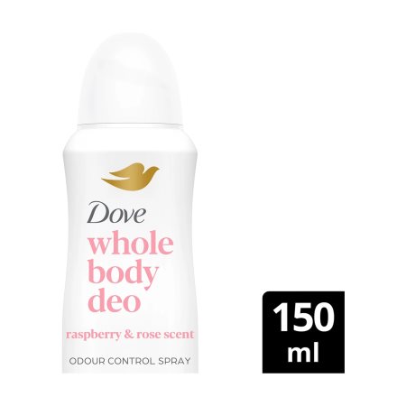 Το Dove Raspberry & Rose αποσμητικό σπρέι για όλο το σώμα προσφέρει ολοήμερο έλεγχο οσμών για μασχάλες, στήθος, μηρούς και άλλα. Φτιαγμένο με συστατικά που θρέφουν το δέρμα, αυτό το αποσμητικό χωρίς αλουμίνιο (0%) είναι σχεδιασμένο για ευαίσθητες επιδερμίδες και κατάλληλο για όλους τους τύπους δέρματος. Το απαλό αυτό αποσμητικό σε κρατάει φρέσκια και γεμάτη αυτοπεποίθηση, με ένα αναζωογονητικό άρωμα βατόμουρου και τριαντάφυλλου.