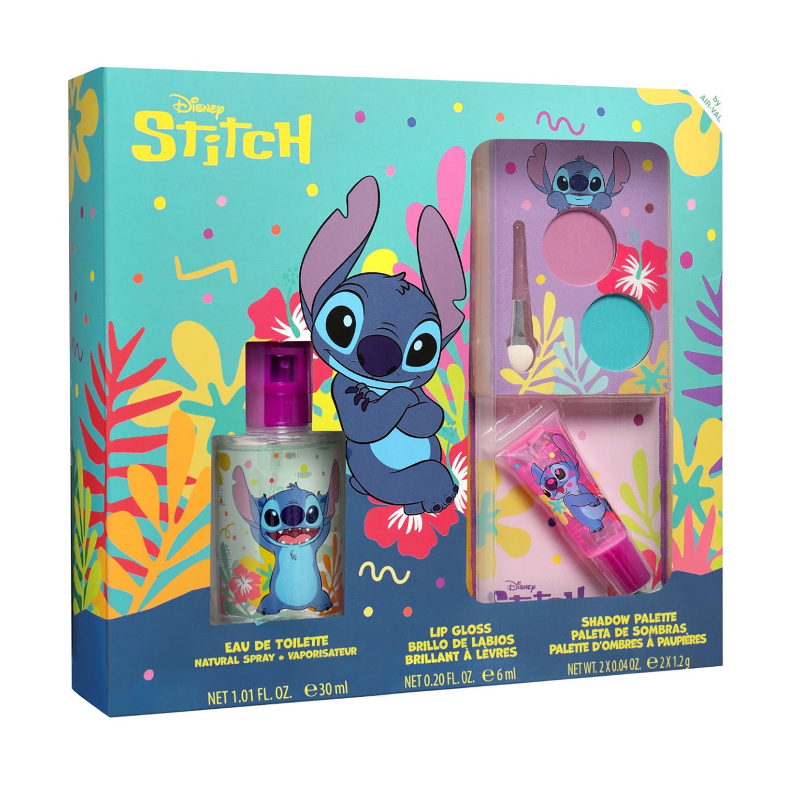 Το Air-Val Disney Stitch Gift Set περιλαμβάνει EDT 30ml, σκιά ματιών και lip gloss. Είναι ένα ξεχωριστό παιδικό σετ δώρου που συνδυάζει φρεσκάδα και παιχνιδιάρικο στυλ.