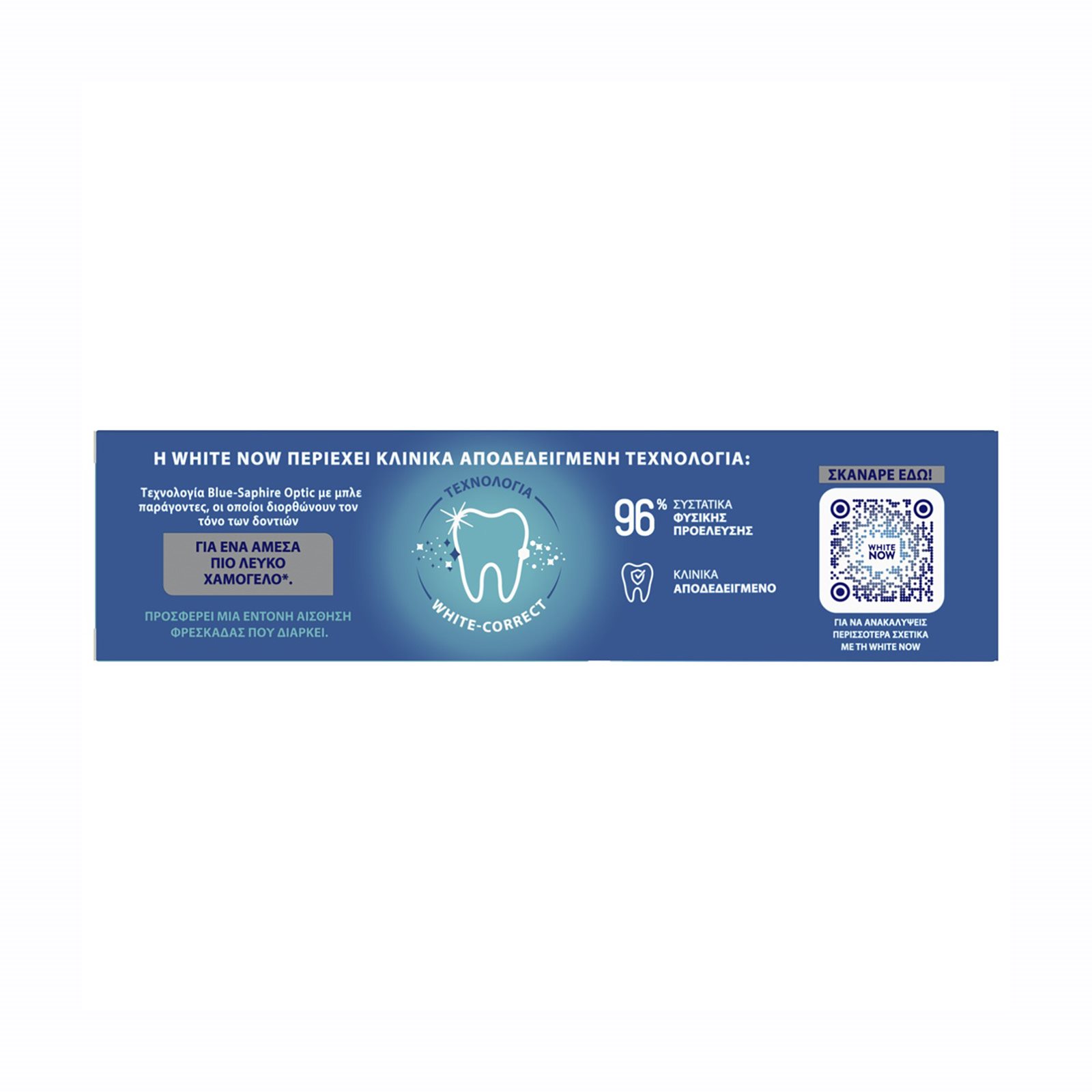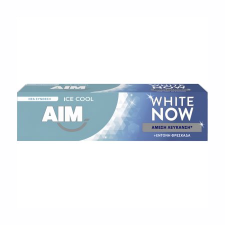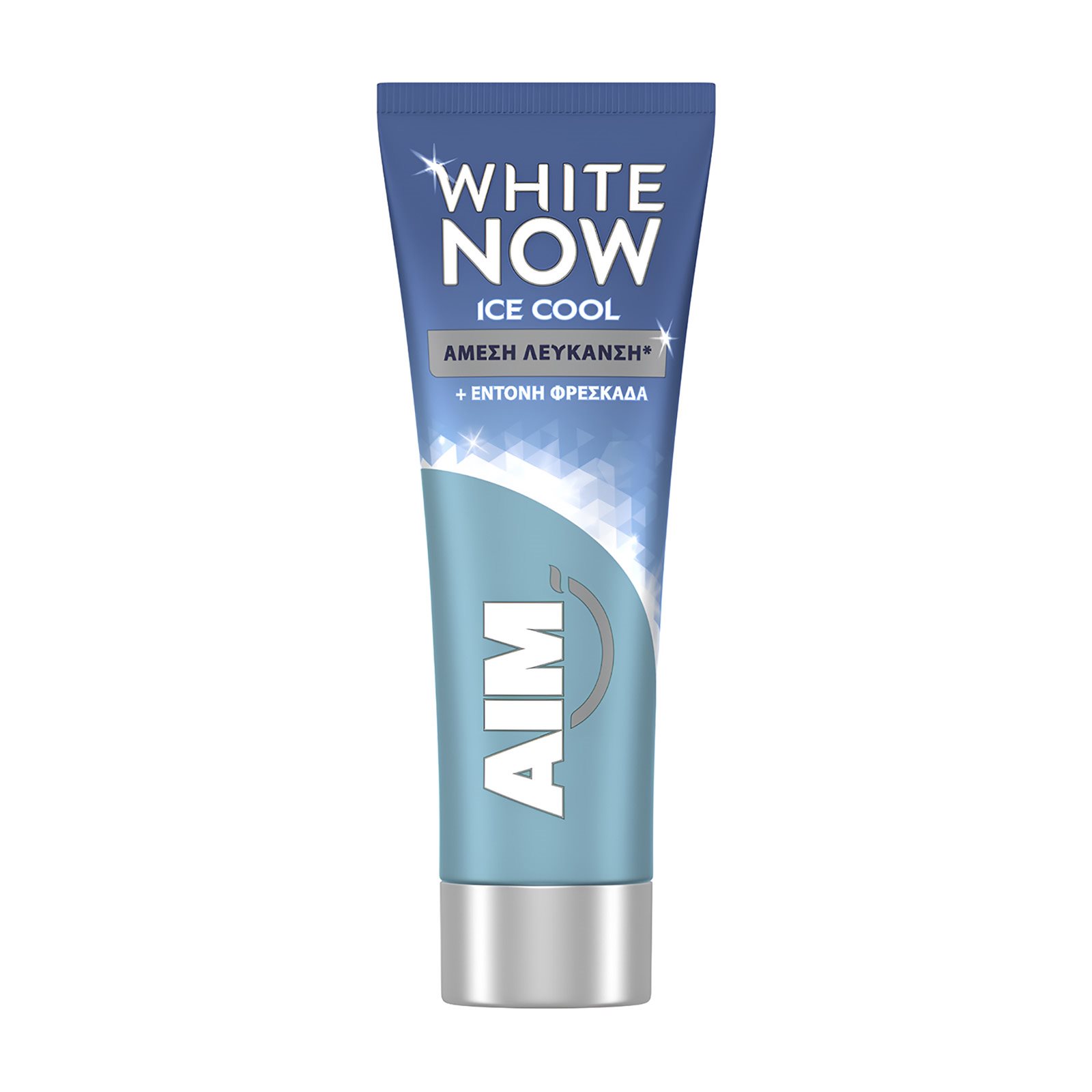 Η AIM White NOW Ice Cool περιέχει κλινικά αποδεδειγμένη τεχνολογία White-correct:Τεχνολογία Blue-Saphire Optic με μπλε παράγοντες, οι οποίοι διορθώνουν τον τόνο των δοντιών για ένα άμεσα πιο λευκό χαμόγελο. Προσφέρει μια έντονη αίσθηση φρεσκάδας που διαρκεί.