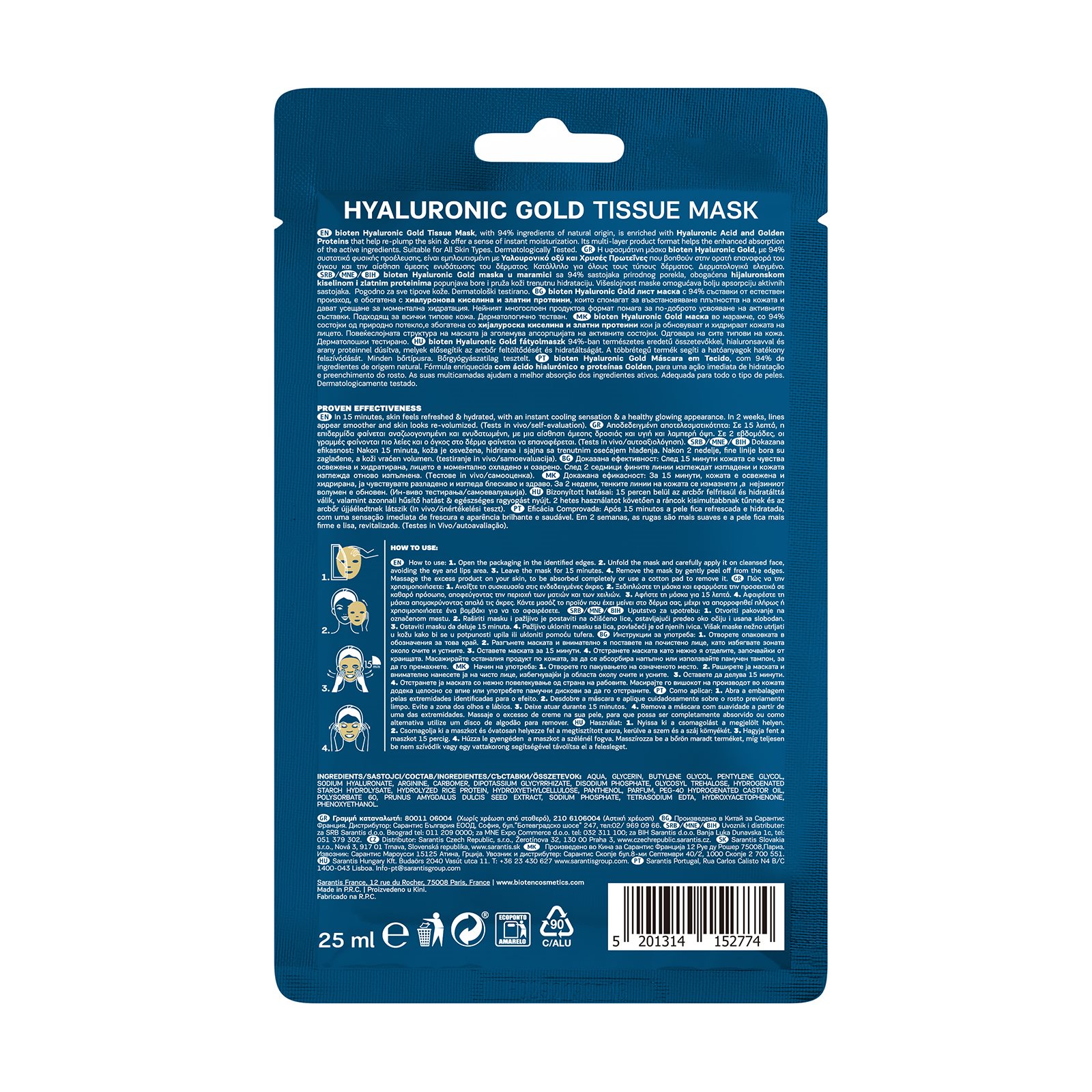 BIOTEN Hyaluronic Gold Μάσκα Προσώπου Υφασμάτινη Replumping & Smoothing 25ml