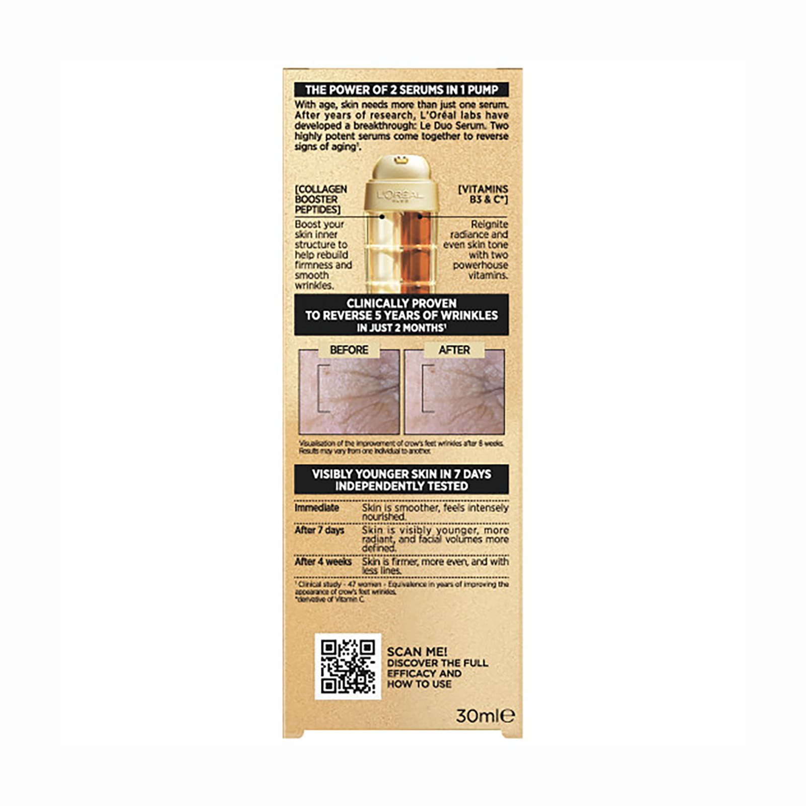 Aqua / Water, Glycerin, Alcohol Denat., Dimethicone, Butylene Glycol, Dipropylene Glycol, Silica, CI 77891 / Titanium Dioxide, Niacinamide, Caprylic/Capric Triglyceride, Adenosine, Alanine, Arginine, Aspartic Acid, Calcium Pca, Capryloyl Salicylic Acid, Copper Gluconate, Glucose, Glycine, Histidine, Isoleucine, Magnesium Aspartate, Neohesperidin Dihydrochalcone, Palmitoyl Tetrapeptide-7, Palmitoyl Tripeptide-1, PCA, Phenylalanine, Proline, Saccharomyces Cerevisiae Extract, Serine, Sodium Hyaluronate, Sodium Hydroxide, Sodium PCA, Threonine, Trisodium Ethylenediamine Disuccinate, Valine, Zinc Gluconate, Ascorbyl Glucoside, Panthenol, Tocopherol, Argania Spinosa Kernel Oil, Ammonium Polyacryloyldimethyl Taurate, Caprylyl Glycol, Carbomer, Citric Acid, Glycine Soja Oil / Soybean Oil, Mica, Poloxamer 338, Polysorbate 20, Sodium Lactate, Tin Oxide, 1,2-Hexanediol, Methylsilanol/Silicate Crosspolymer, Limonene, Linalool, Caramel, Phenoxyethanol, Parfum / Fragrance (F.I.L. Z70032488/1).