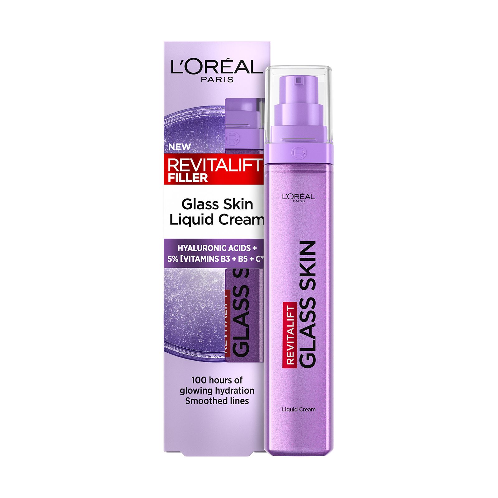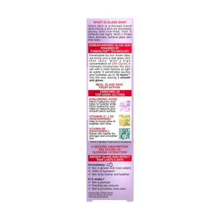 Η L'Oréal Paris Revitalift Filler Glass Skin Liquid Cream είναι η πρώτη ενυδατική κρέμα σχεδιασμένη για να χαρίζει ένα αποτέλεσμα "Glass Skin" με διάρκεια. Η καινοτόμος σύνθεσή της ενυδάτωνει εντατικά, γεμίζοντας την επιδερμίδα για να μειώσει την εμφάνιση λεπτών γραμμών και ρυτίδων, ενισχύοντας ταυτόχρονα τη φυσική της λάμψη. Ένας μοναδικός συνδυασμός Υαλουρονικών Οξέων (Μάκρο και Μίκρο-μόρια) και Βιταμινών B3, B5 και C συνεργάζονται για να δημιουργήσουν μια αψεγάδιαστη, δροσερή όψη που διαρκεί.