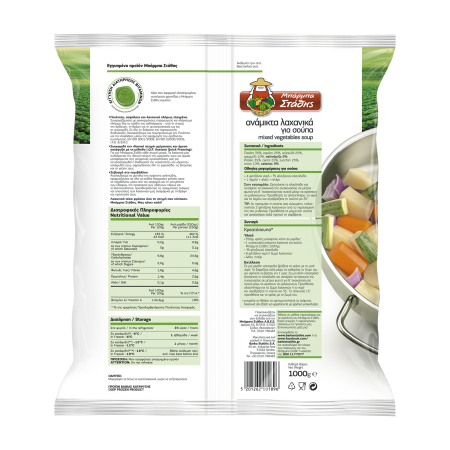 Πατάτα 35%, καρότο 25%, κολοκύθι 25%, κρεμμύδι 10%, ΣΕΛΙΝΟΡΙΖΑ 5%.