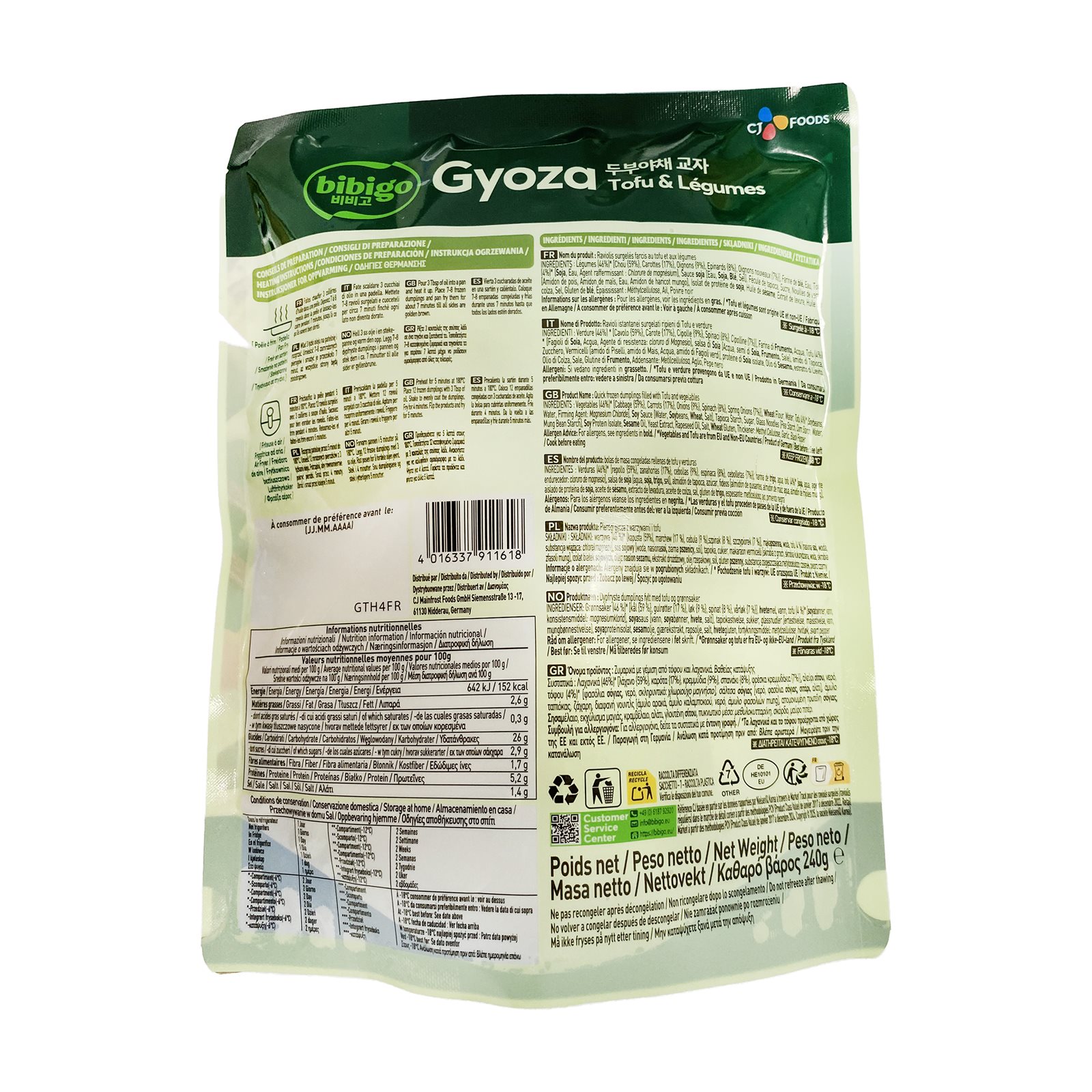 Gyoza Dumpling BIBIGO Tofu & Λαχανικά Vegan 240g