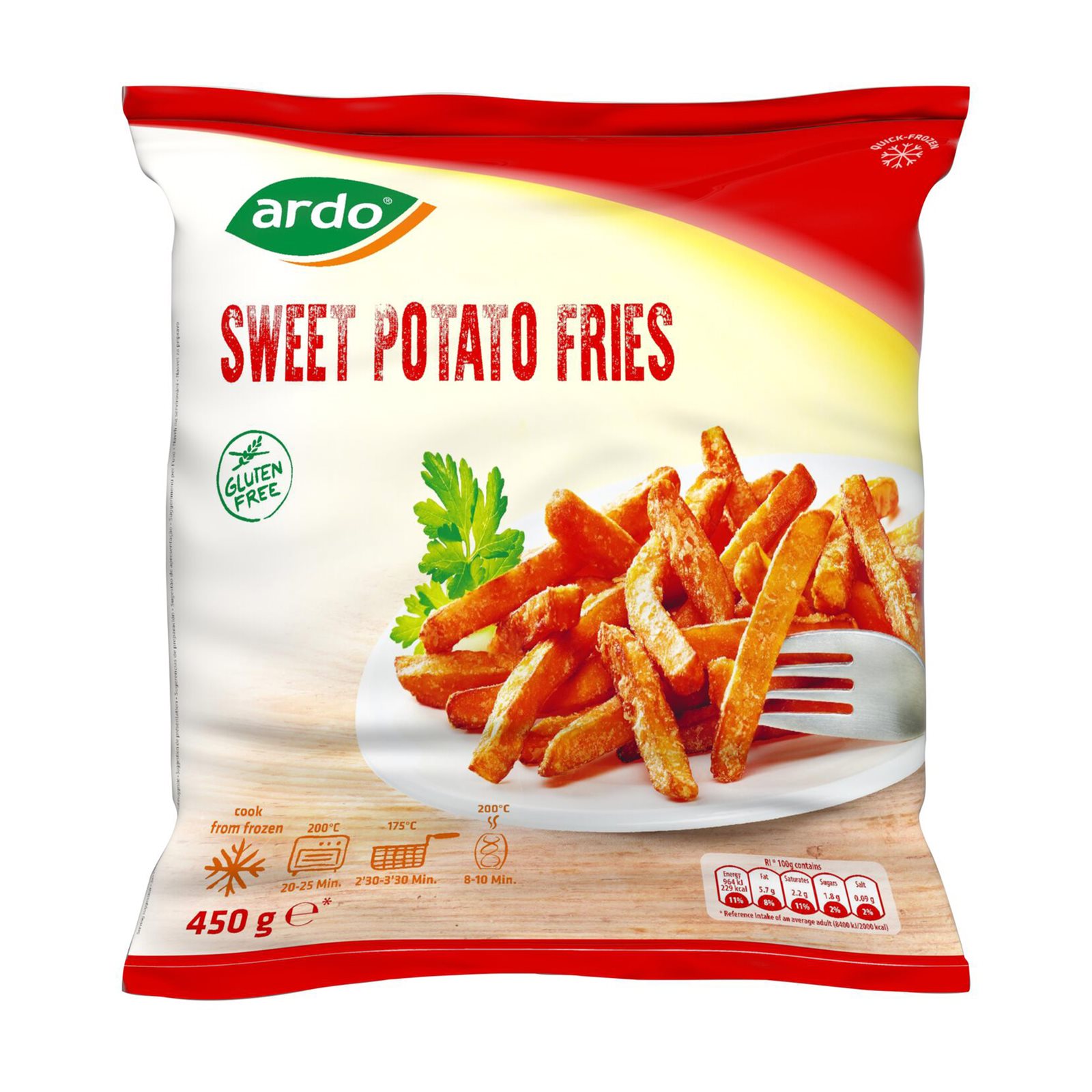 Φούρνος: Τοποθετήστε τις κατεψυγμένες τηγανητές γλυκοπατάτες σε μονή στρώση σε ένα ταψί. Ψήστε σε προθερμασμένο φούρνο στους 200°C για 20 - 25 λεπτά ή μέχρι να γίνουν χρυσές και τραγανές, γυρίζοντάς τις μία φορά.