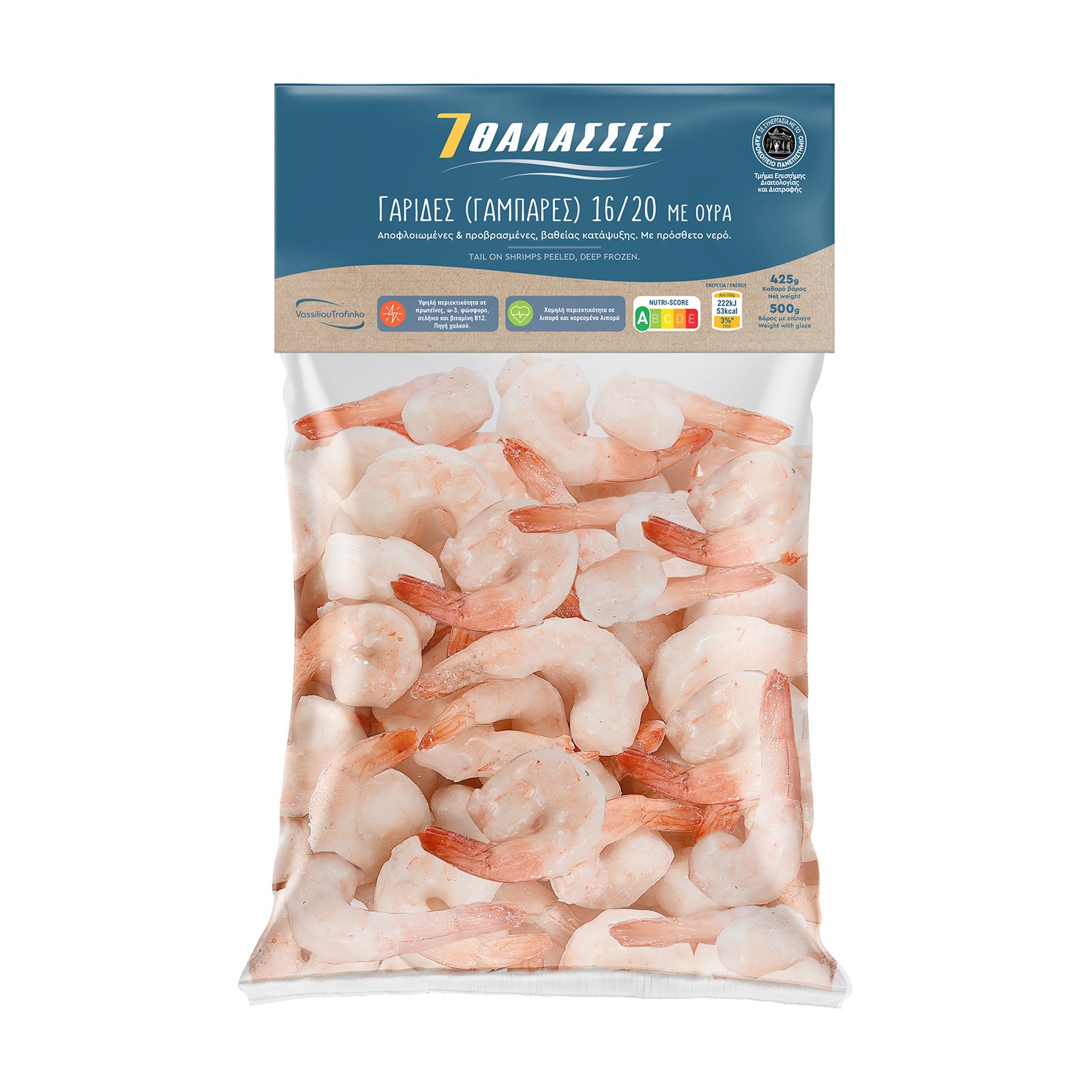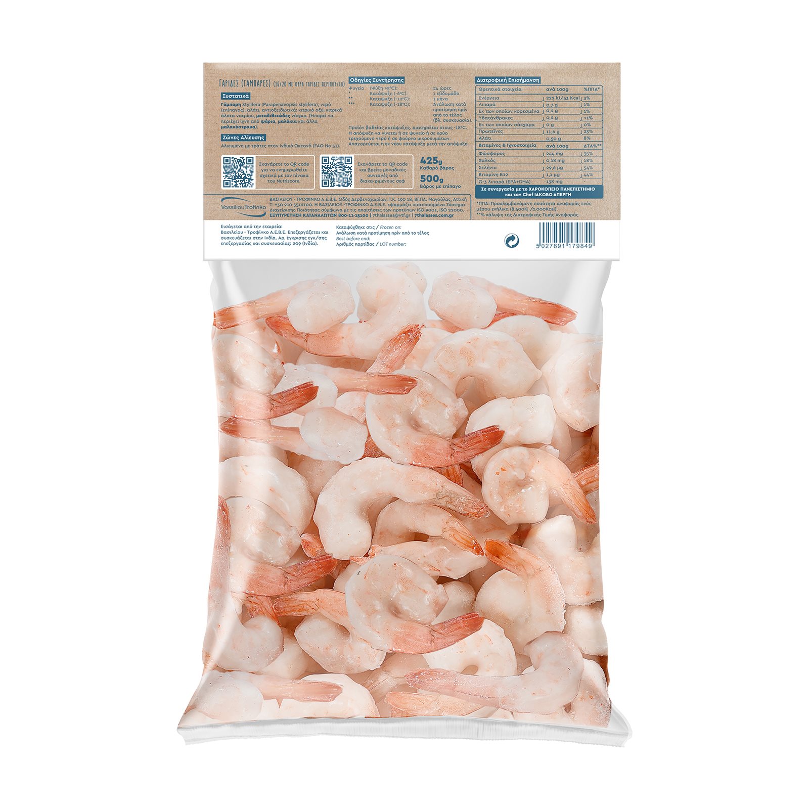 Γάμπαρη Stylifera (Parapenaeopsis stylifera), νερό (επίπαγος), αλάτι, αντιοξειδωτικά: κιτρικό οξύ, κιτρικά άλατα νατρίου, μεταδιθειώδες νάτριο.
