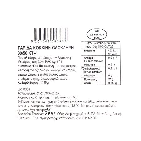 Γαρίδες Ολόκληρες PRIME SEAS Κόκκινες 30/50 Εγχώριες 1100g