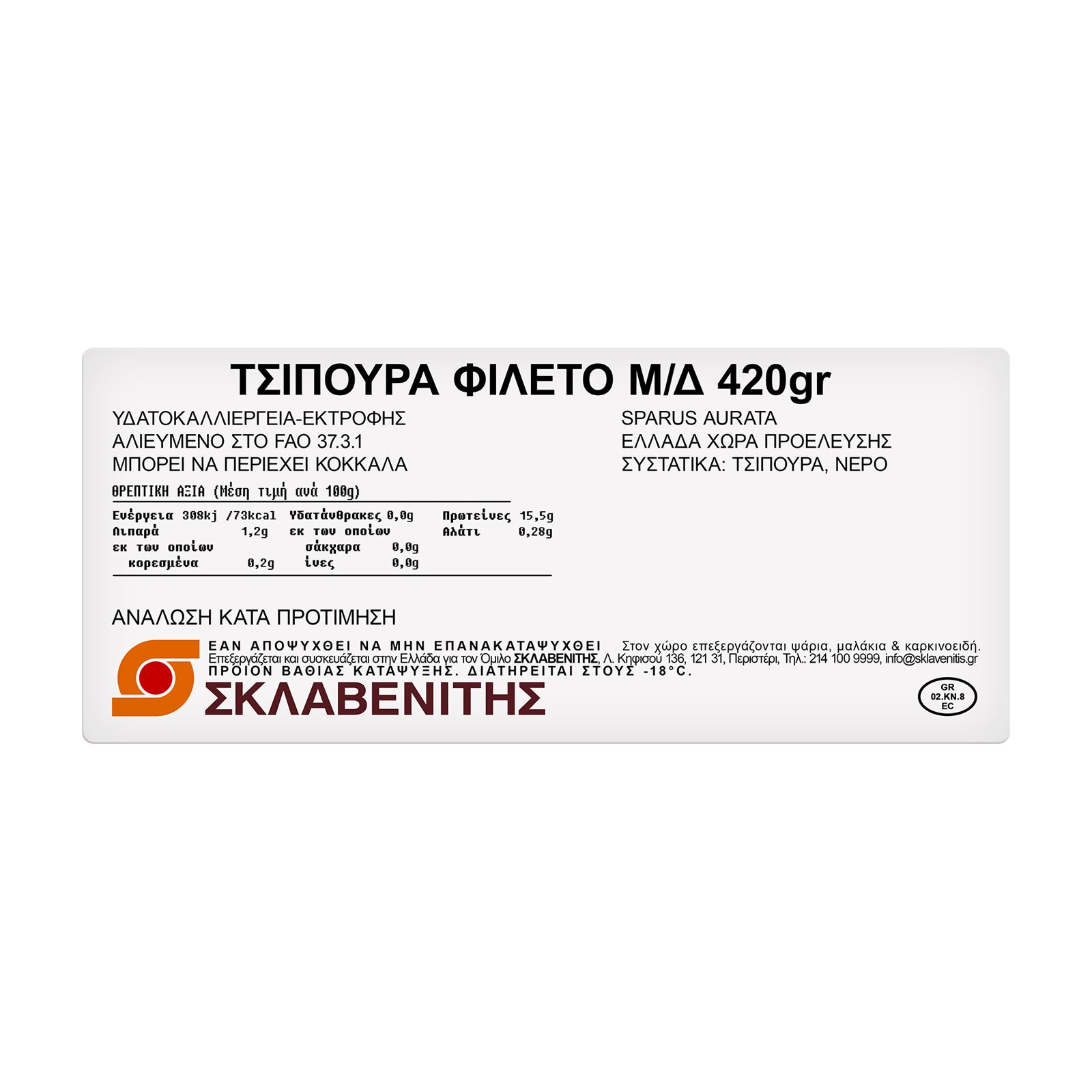 Τσιπούρα Φιλέτο Υδατοκαλλιέργειας με δέρμα Ελληνική 420g