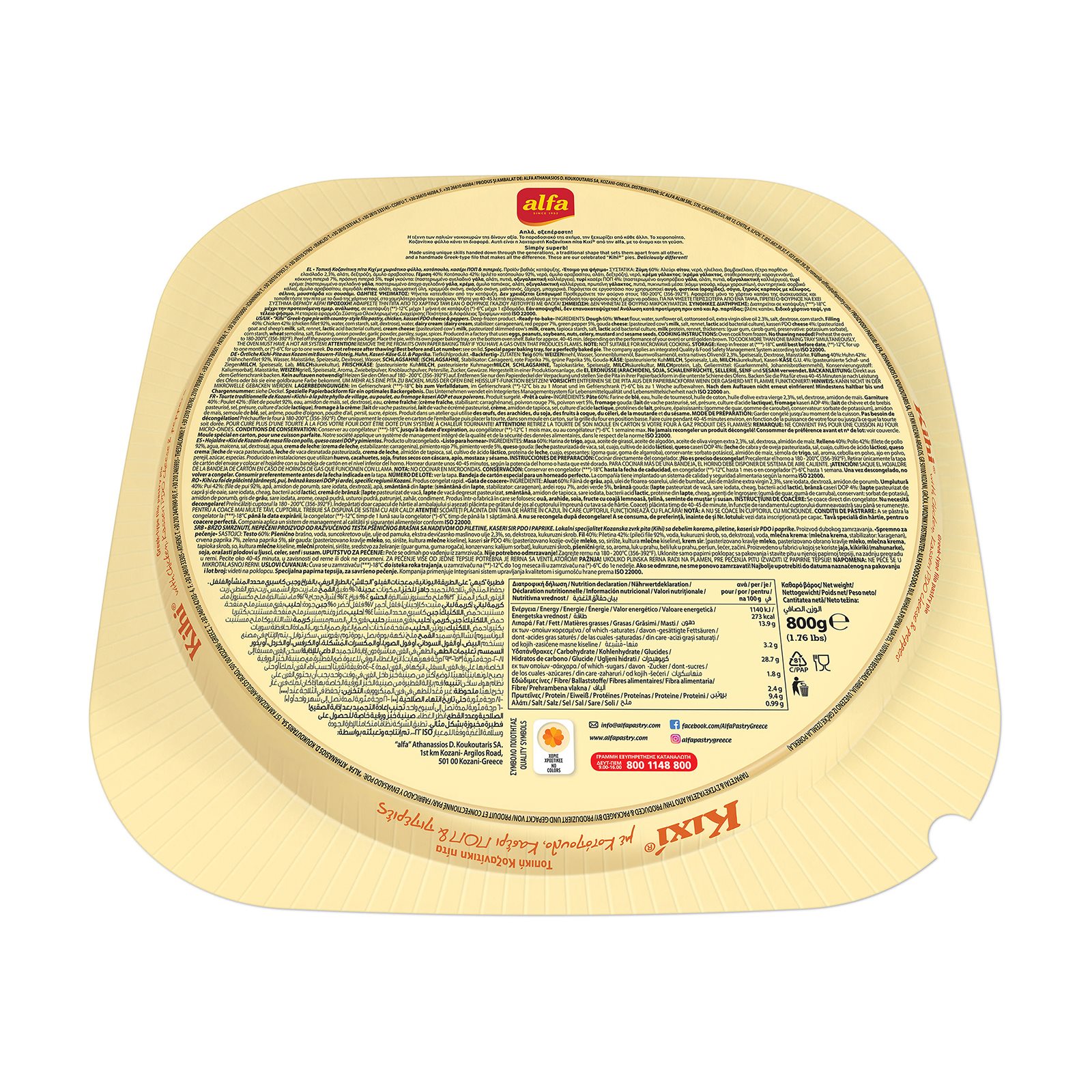 Παράγεται και συσκευάζεται από την ALFA, ΑΘΑΝΑΣΙΟΣ Δ. ΚΟΥΚΟΥΤΑΡΗΣ Α.Ε.Β.Ε., 1° Χλμ. Κοζάνης - Αργίλου, 501 00 Kοζάνη - Τηλ: 24610 42103-4, Email: info@alfapastry.com