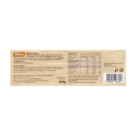 1 μερίδα: 1 μπισκότο (6,2g). Η συσκευασία περιέχει περίπου 30 μπισκότα. |