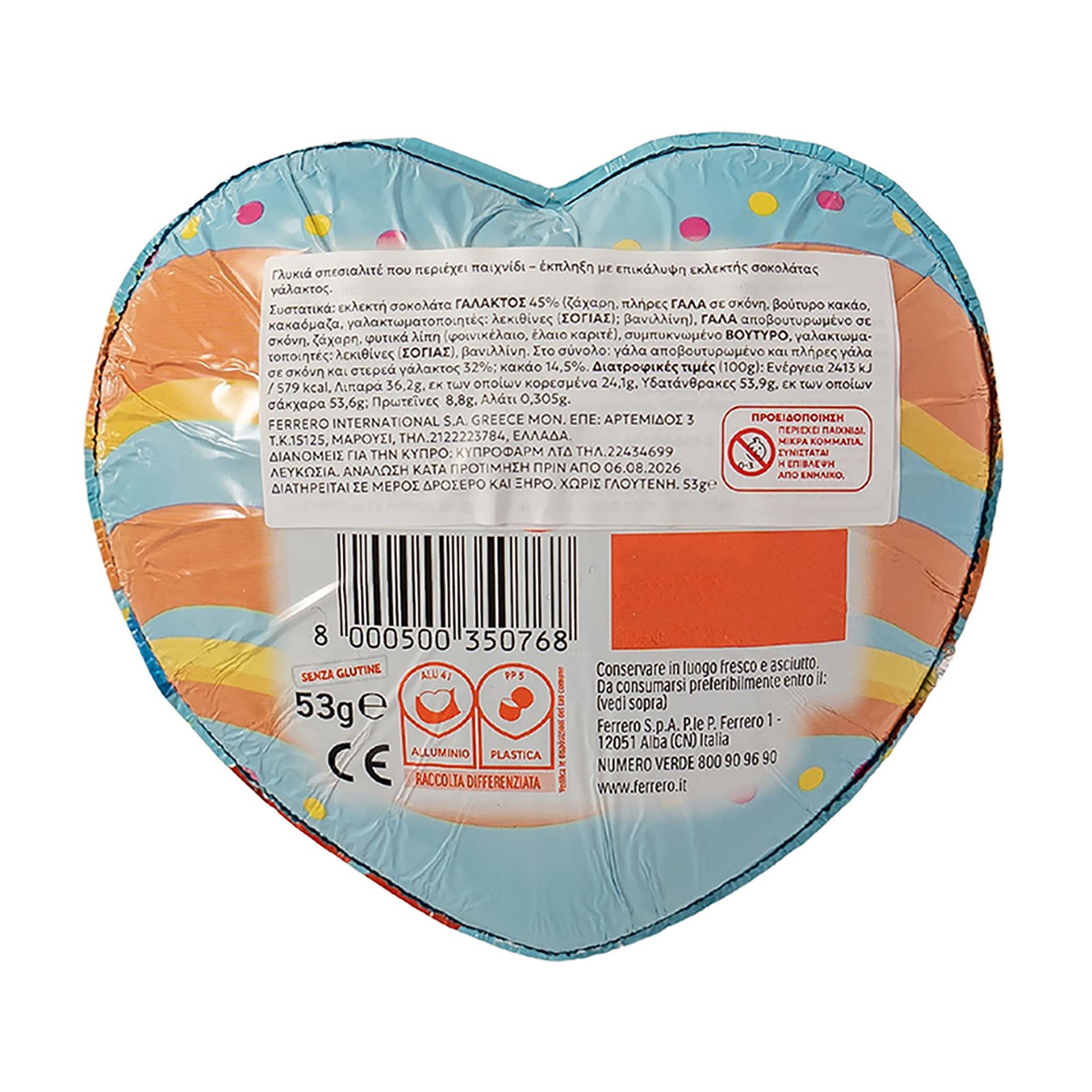 Γλυκιά σπεσιαλιτέ που περιέχει παιχνίδι έκπληξη με επικάλυψη εκλεκτής σοκολάτας γάλακτος.