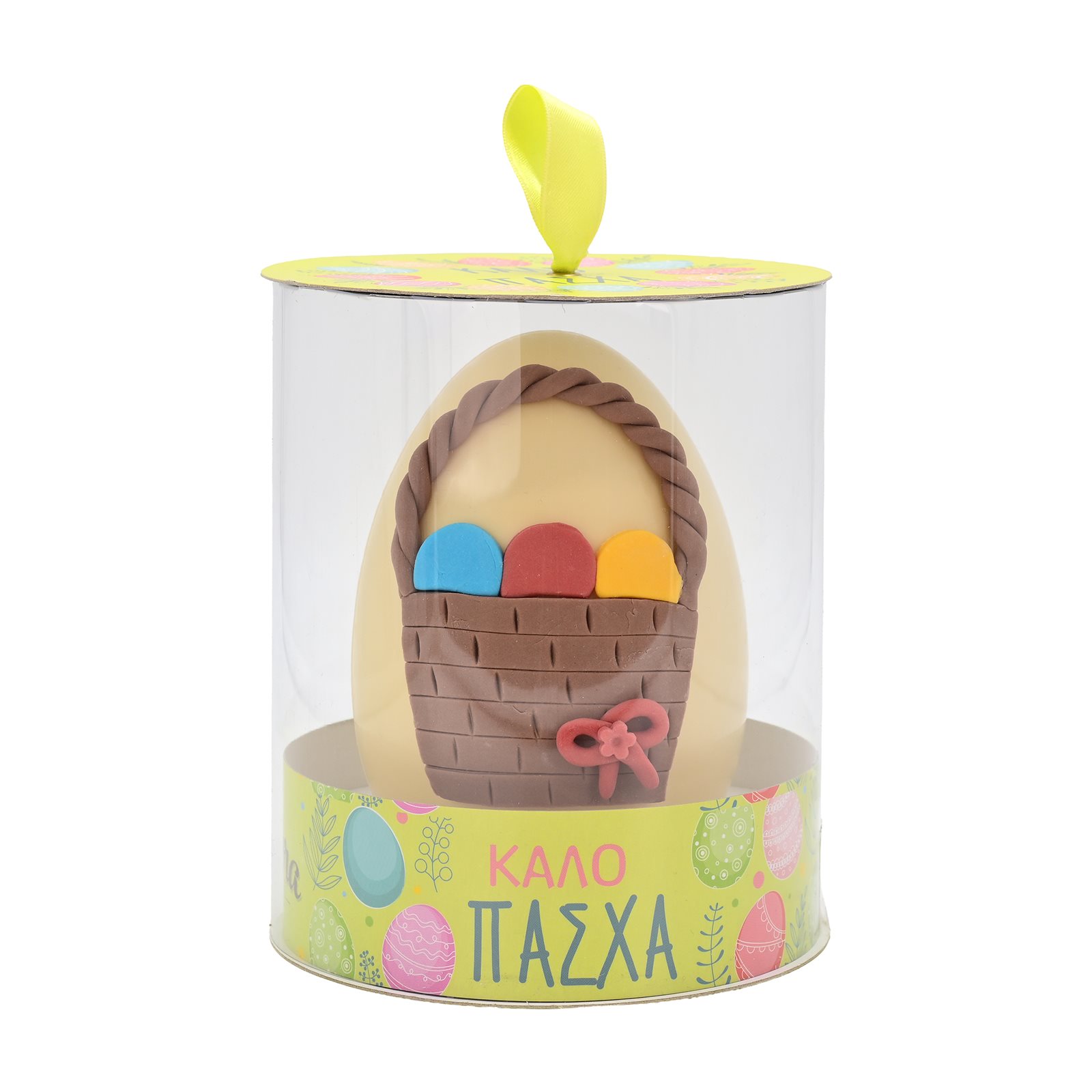Λευκή σοκολάτα 84,6% [ζάχαρη, βούτυρο κακάο, πλήρες ΓΑΛΑ σε σκόνη, φυτικά λιπαρά (φοινικέλαιο, καριτέ), γαλακτωματοποιητές (λεκιθίνη ΣΟΓΙΑΣ, πολυγλυκερίδια του πολυρικινελαϊκού οξέος), αρωματική ύλη: βανιλίνη, περιέχει φυτικά λιπαρά επιπλέον του βουτύρου του κακάο)], ζαχαρόπαστα [ζάχαρη 75%, γλυκόζη, μερικώς υδρογονωμένα φυτικά λιπαρά, άμυλο, γλυκερόλη, πηκτικά μέσα (τραγακανθινο κόμμι, κόμμι ξανθάνης, κόμμι κυτταρίνης), αρωματική ύλη: βανιλίνη, ρυθμιστής οξύτητας: κιτρικό οξύ, συντηρητικό: σορβικό κάλιο, κακάο σε σκόνη, μαλτοδεξτρίνη, νερό, χρωστικές ουσίες (συμπύκνωμα παντζαριού και καρότου, καροτένια, μπλε πατεντέ V), αντιοξειδωτικό: ασκορβικό οξύ)].