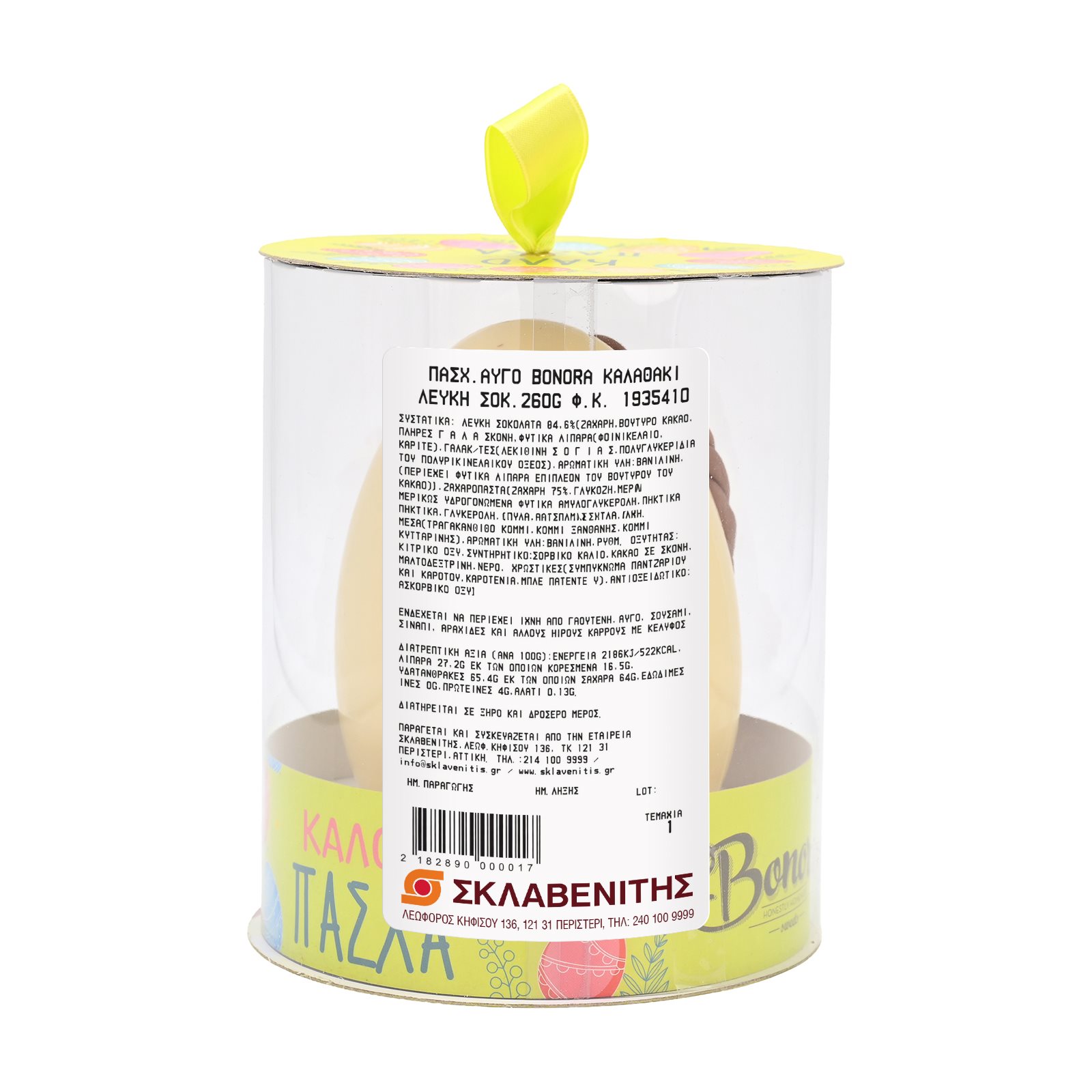 Παρασκευάζεται και συσκευάζεται από την εταιρεία ΣΚΛΑΒΕΝΙΤΗΣ, Λεωφ. Κηφισού 136, 121 31 Περιστέρι, Αθήνα - Τηλ. Κέντρο: 214 100 9999, Email: info@sklavenitis.gr