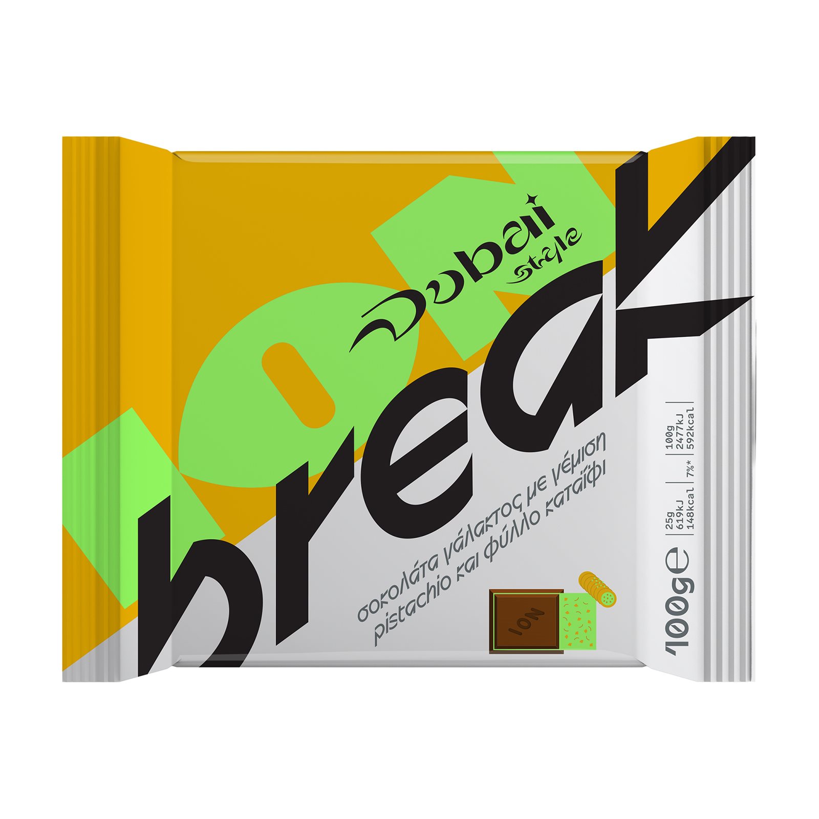 Σοκολάτα γάλακτος με γέμιση pistachio και φύλλο κανταΐφι.