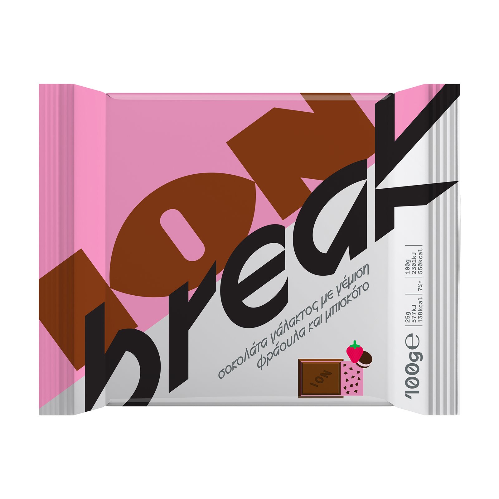 ION Break Σοκολάτα Γάλακτος με γέμιση Φράουλα & Μπισκότο 100g