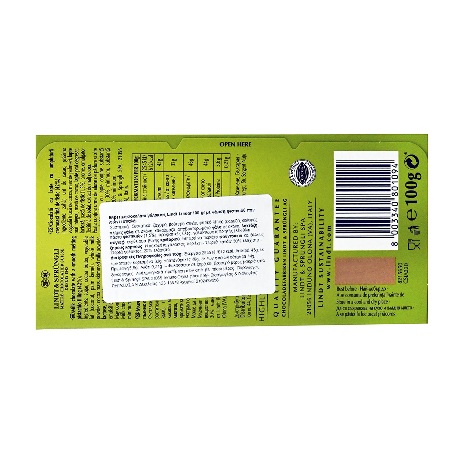LINDT Lindor Σοκολάτα Γάλακτος Pistachio 100g