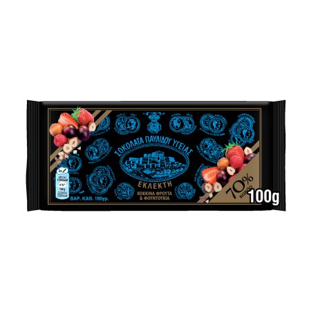 ΠΑΥΛΙΔΗΣ Εκλεκτή Σοκολάτα Υγείας 70% Κακάο με Κόκκινα Φρούτα & Φουντούκια 100g