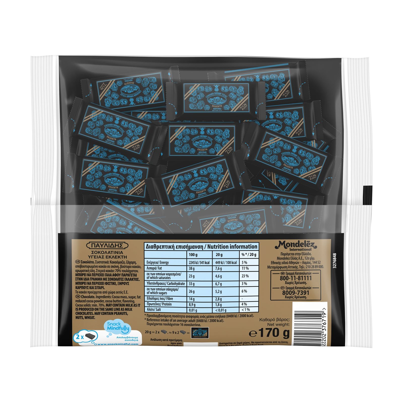 ΠΑΥΛΙΔΗΣ Σοκολατίνια Υγείας με 70% Κακάο 170g