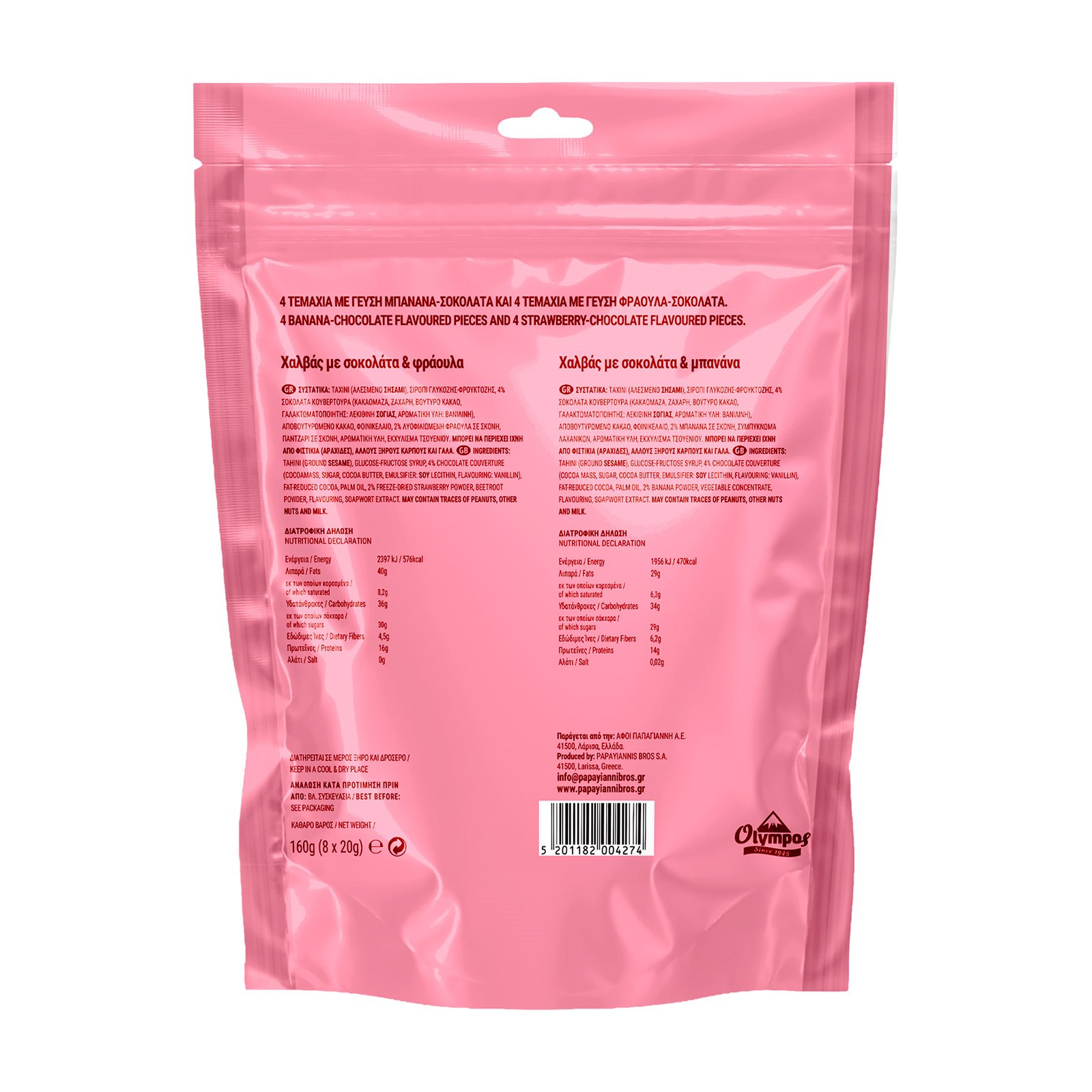 Μπουκιές Χαλβά ΟΛΥΜΠΟΣ Σοκολάτα Φράουλα & Σοκολάτα Μπανάνα 160g