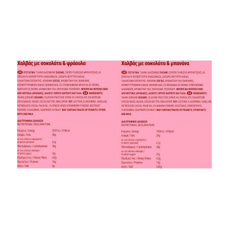 Χαλβάς με γεύση μπανάνα & σοκολάτα και Χαλβάς με γεύση σοκολάτα & μπανάνα.