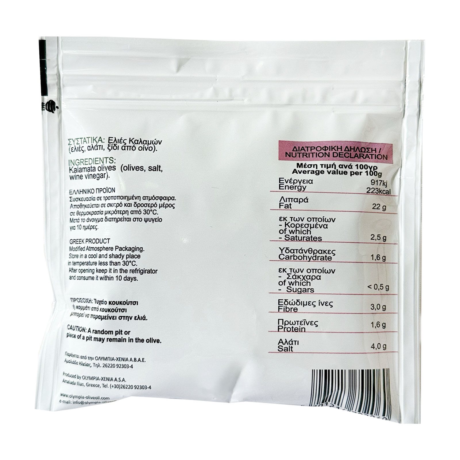 Ελιές Καλαμών χωρίς κουκούτσι και χωρίς άλμη, έτοιμες να τις απολαύσετε, σε συσκευασία με εύκολο άνοιγμα.