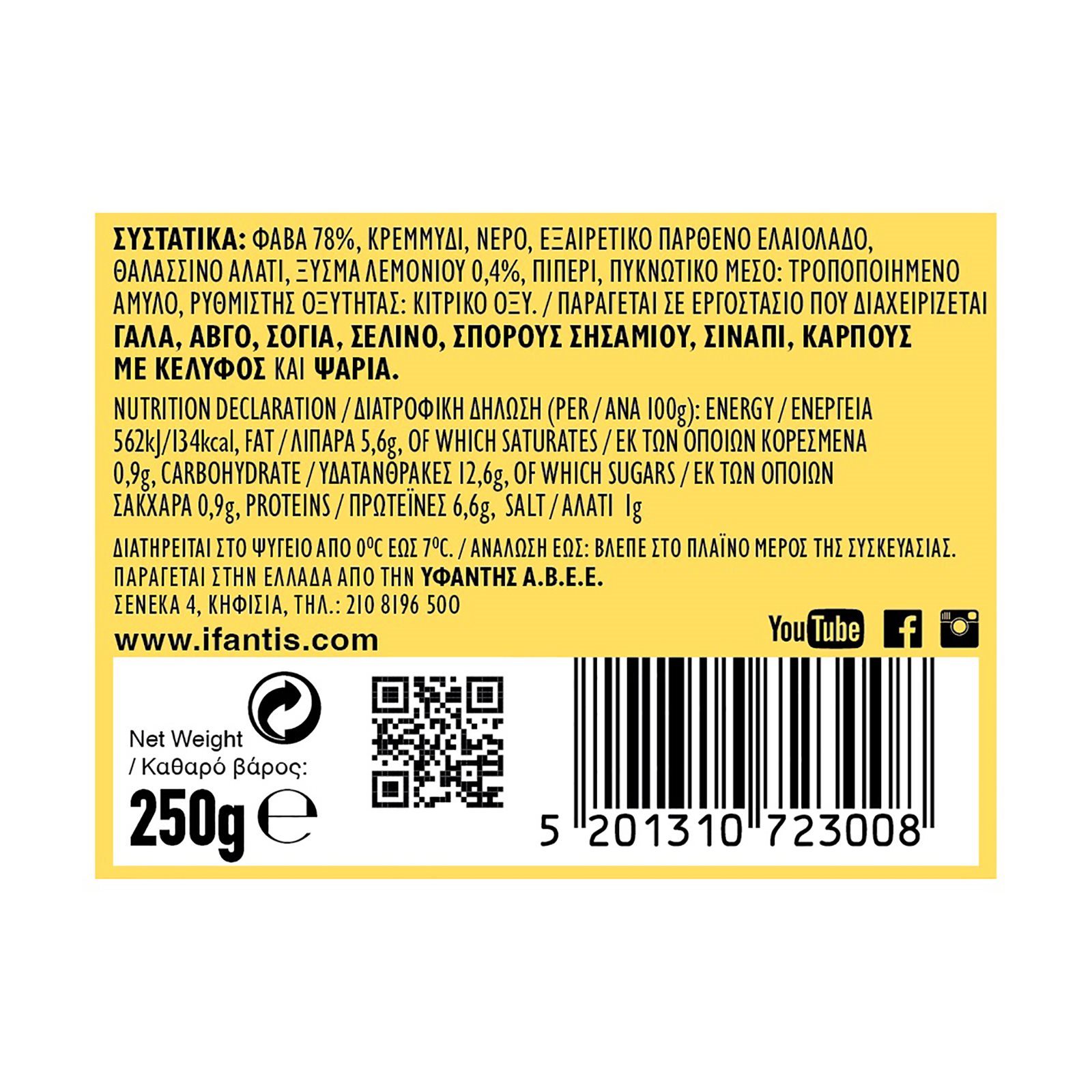 Φάβα IFANTIS με Λεμόνι Vegan Χωρίς γλουτένη 250g
