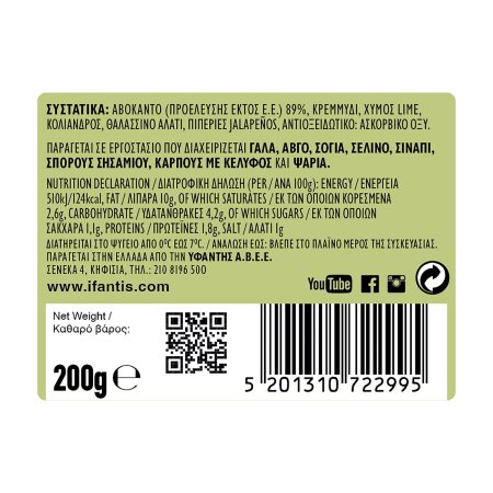 Σαλάτα Guacamole IFANTIS Vegan Χωρίς γλουτένη 200g