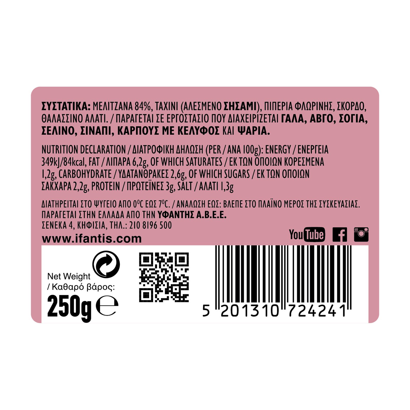 Μελιτζανοσαλάτα IFANTIS Baba Ghanoush Vegan Χωρίς γλουτένη 250g