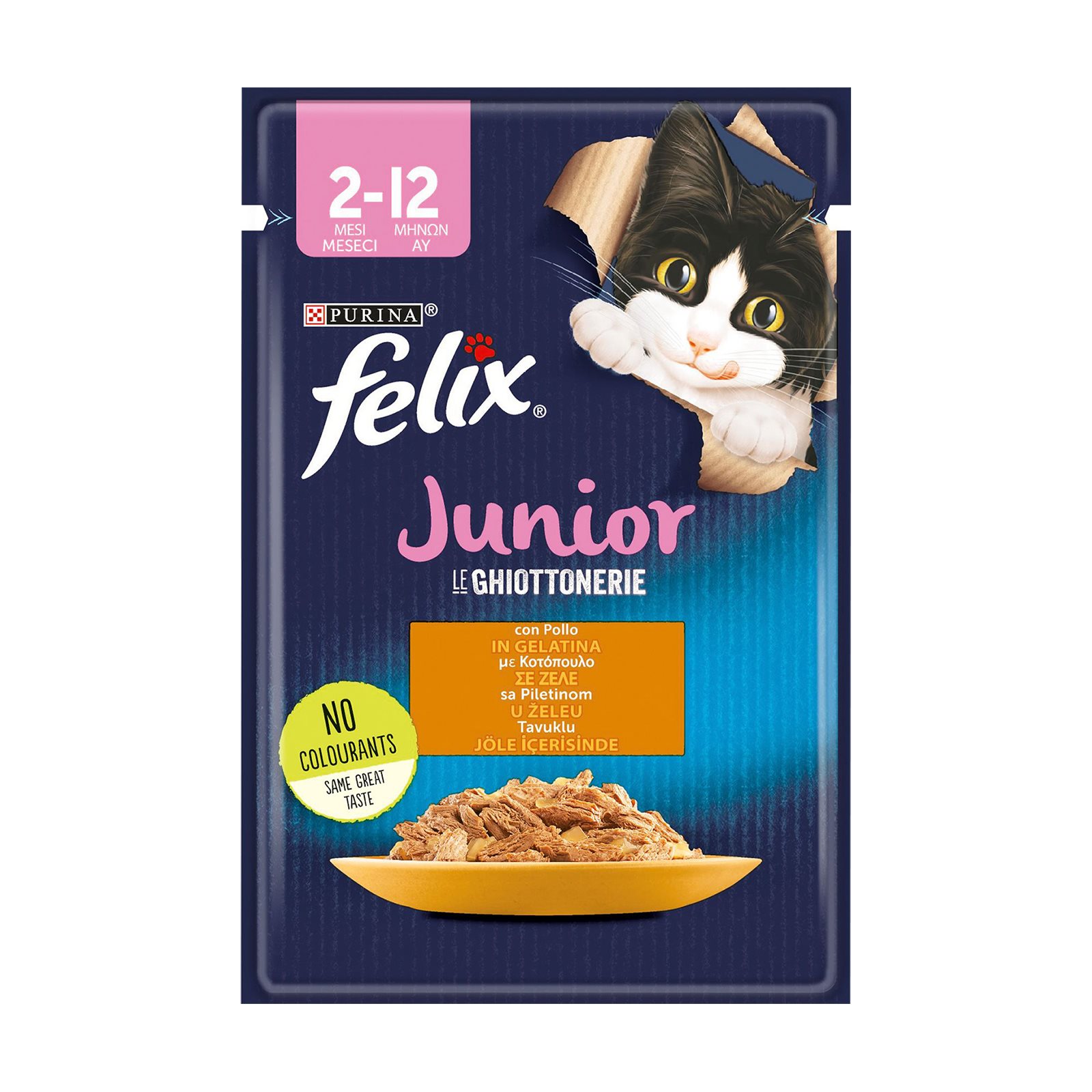 FELIX Le Ghiottonerie Junior Υγρή Τροφή Γάτας 2 -12 μηνών Κοτόπουλο σε ζελέ 85g