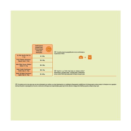 Οι εξατομικευμένες ανάγκες μπορεί να διαφέρουν και η ημερήσια ποσότητα θα πρέπει να προσαρμόζεται έτσι ώστε ο σκύλος σας να διατηρεί υγιές σωματικό βάρος χωρίς περιττό λίπος.