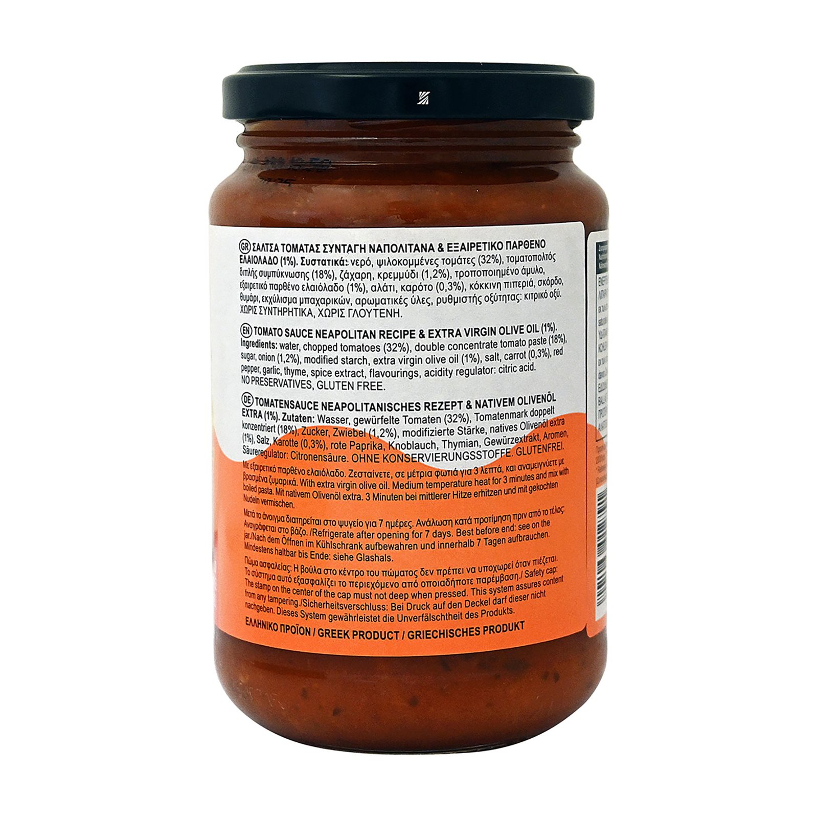 Σάλτσα ντομάτας συνταγή ναπολιτάνα και εξαιρετικό παρθένο ελαιόλαδο (1%).