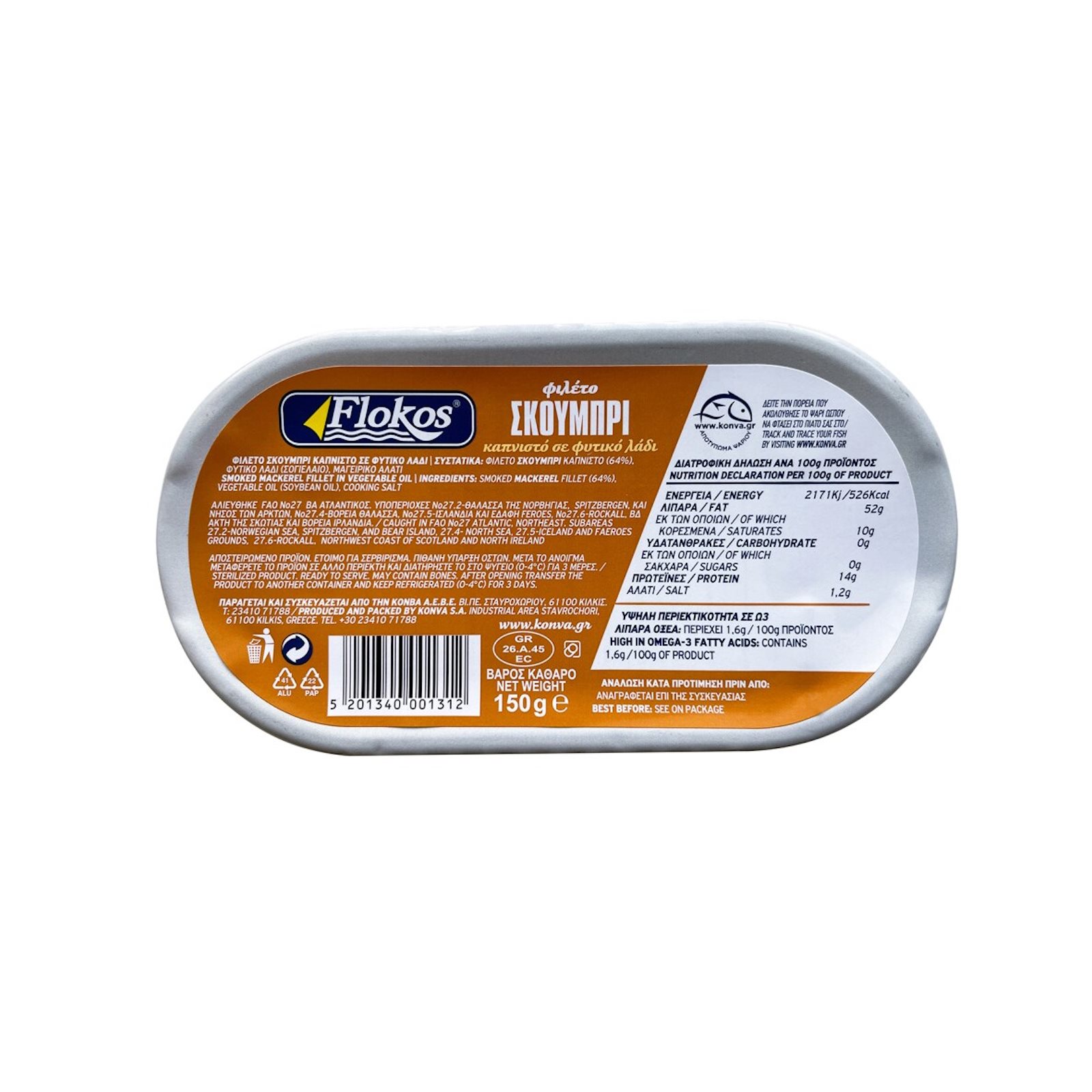 FLOKOS Καπνιστό Σκουμπρί φιλέτο σε Φυτικό Λάδι 150g