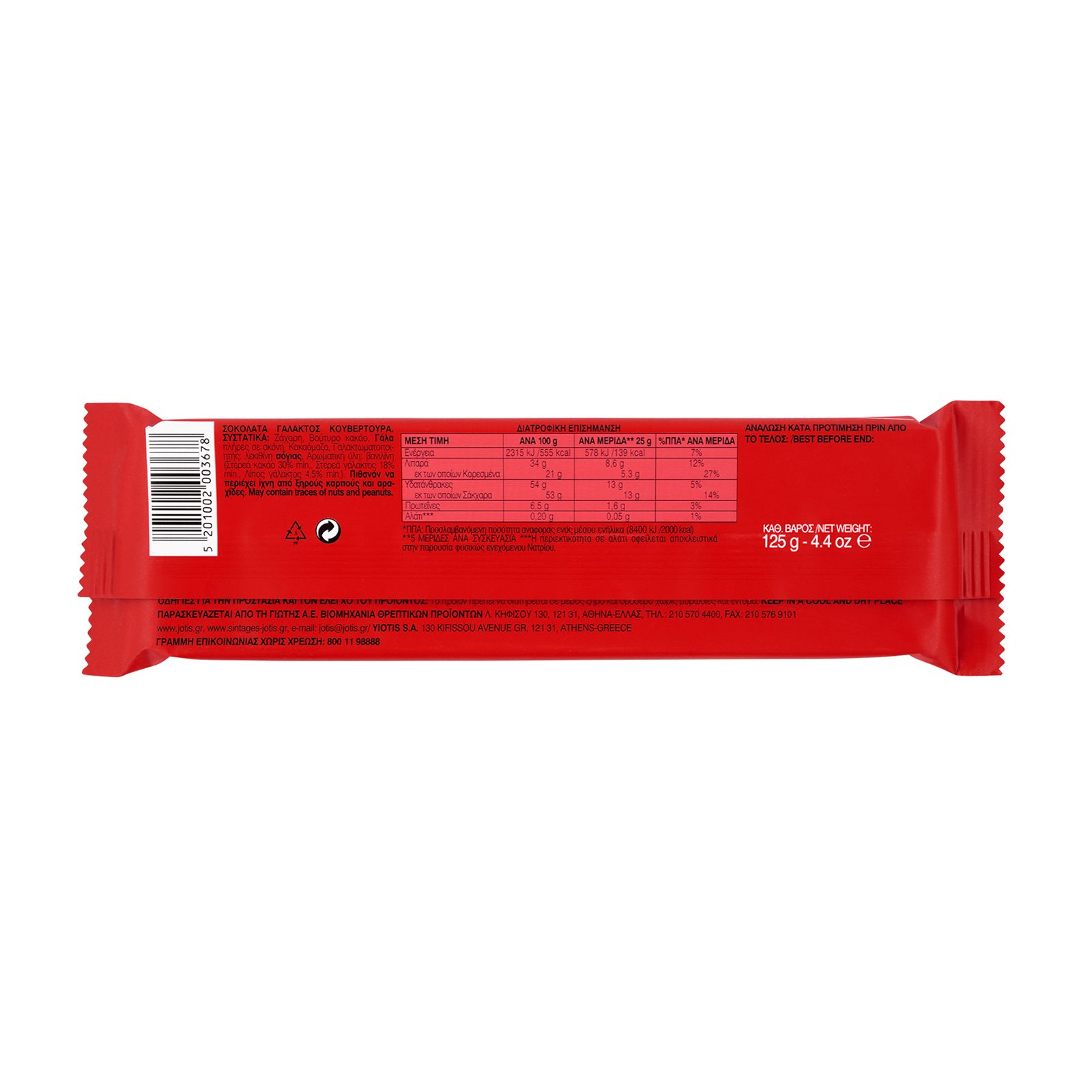 ΓΙΩΤΗΣ Κουβερτούρα Γάλακτος Χωρίς γλουτένη 125g