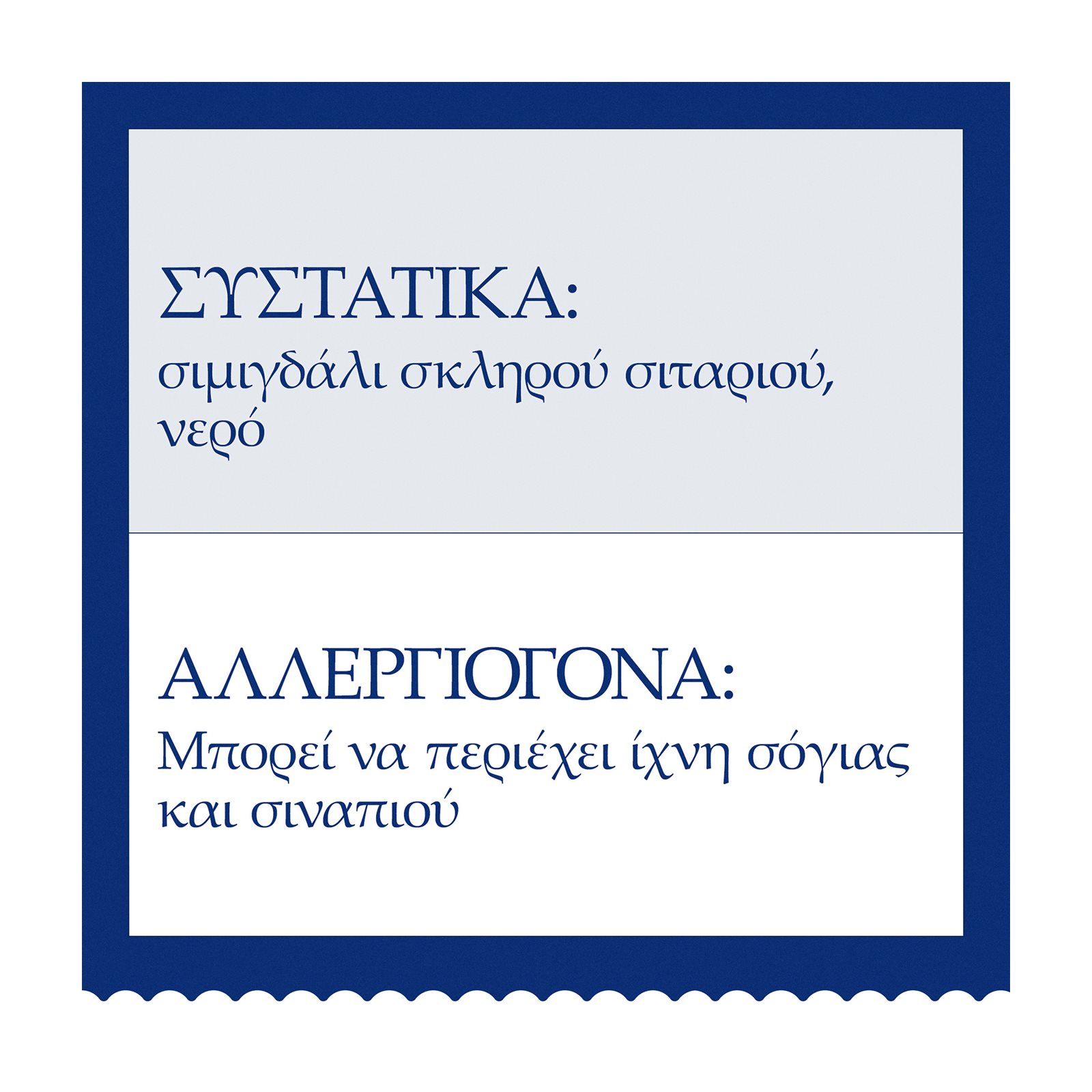 Τα αλλεργιογόνα συστατικά και τα ίχνη αλλεργιογόνων επισημαίνονται με ΚΕΦΑΛΑΙΟΥΣ χαρακτήρες.
