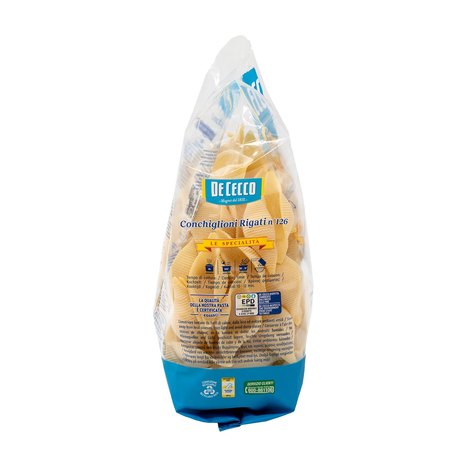 Τα Conchiglioni Rigati (μεγάλα κοχύλια με γραμμές), τα οποία προέρχονται από την περιοχή της Καμπανίας, είναι πλέον πολύ δημοφιλή σε όλη την Ιταλία. Το ασυνήθιστο μέγεθος και το σχήμα του κοχυλιού καθιστούν αυτά τα ζυμαρικά ιδανικά για να συγκρατούν σάλτσες και έτσι είναι ένα ασυναγώνιστο σχήμα για την παρασκευή γεμιστών πιάτων ζυμαρικών με ψάρια ή σάλτσες κρέατος ψημένα στο φούρνο. Μπορείτε να απολαύσετε και αυτά τα ζυμαρικά με ελαφριές σάλτσες με μοτσαρέλα, ντομάτα και φρέσκο βασιλικό.