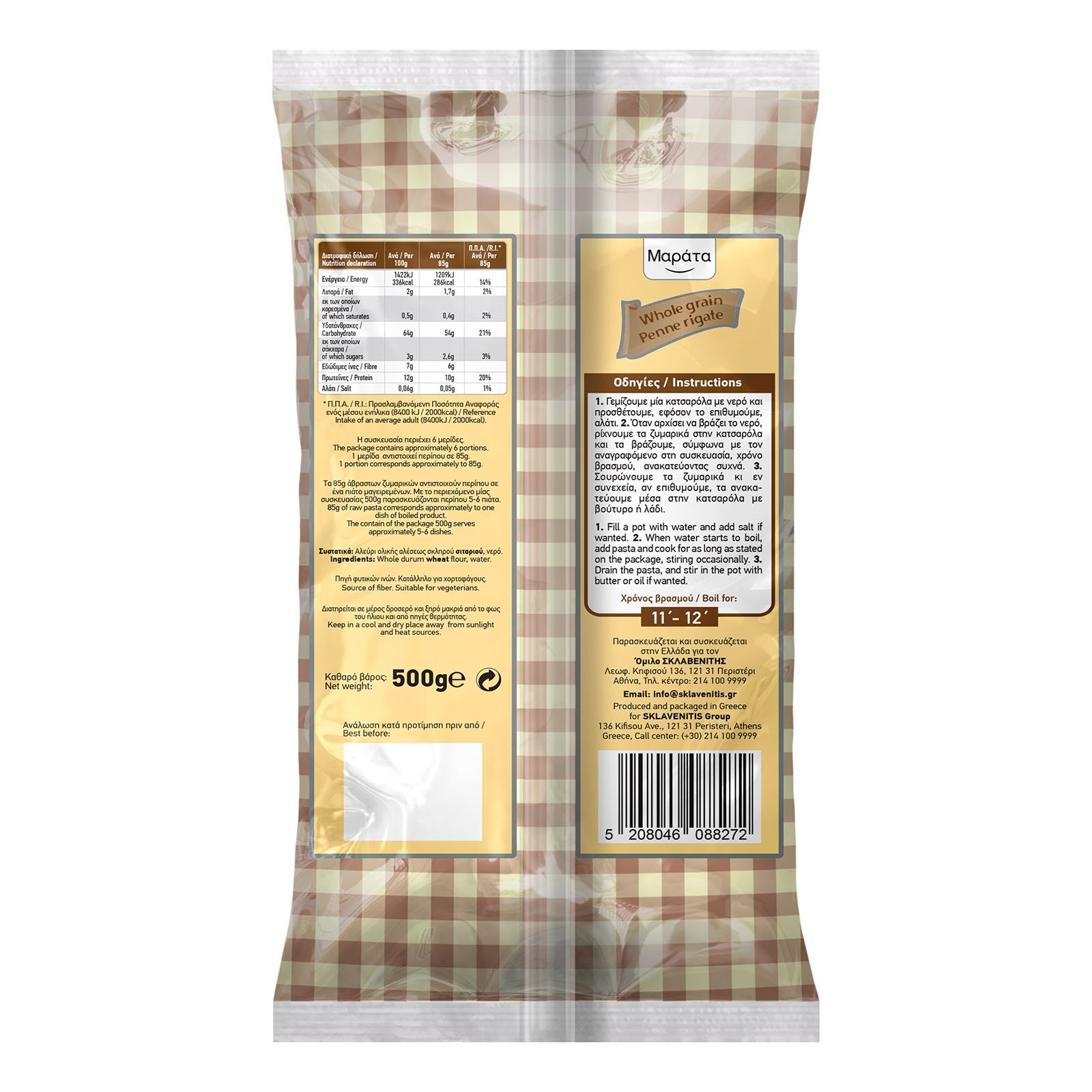 ΜΑΡΑΤΑ Πένες Ριγέ Ολικής Άλεσης 500g