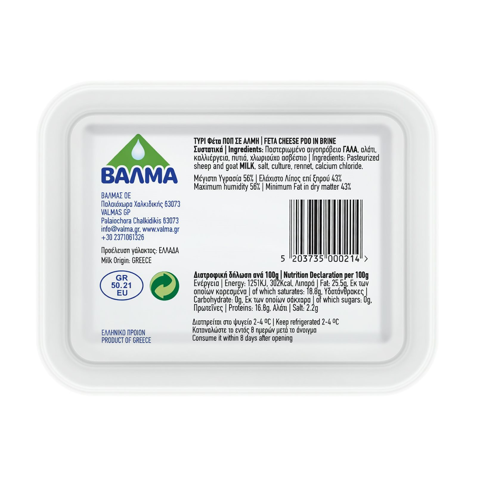 Φέτα ΒΑΛΜΑ ΠΟΠ σε Άλμη Χωρίς λακτόζη 1kg