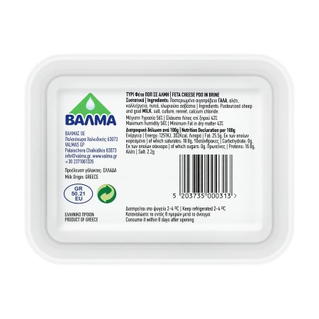 Φέτα ΒΑΛΜΑ ΠΟΠ σε Άλμη Χωρίς λακτόζη 400g