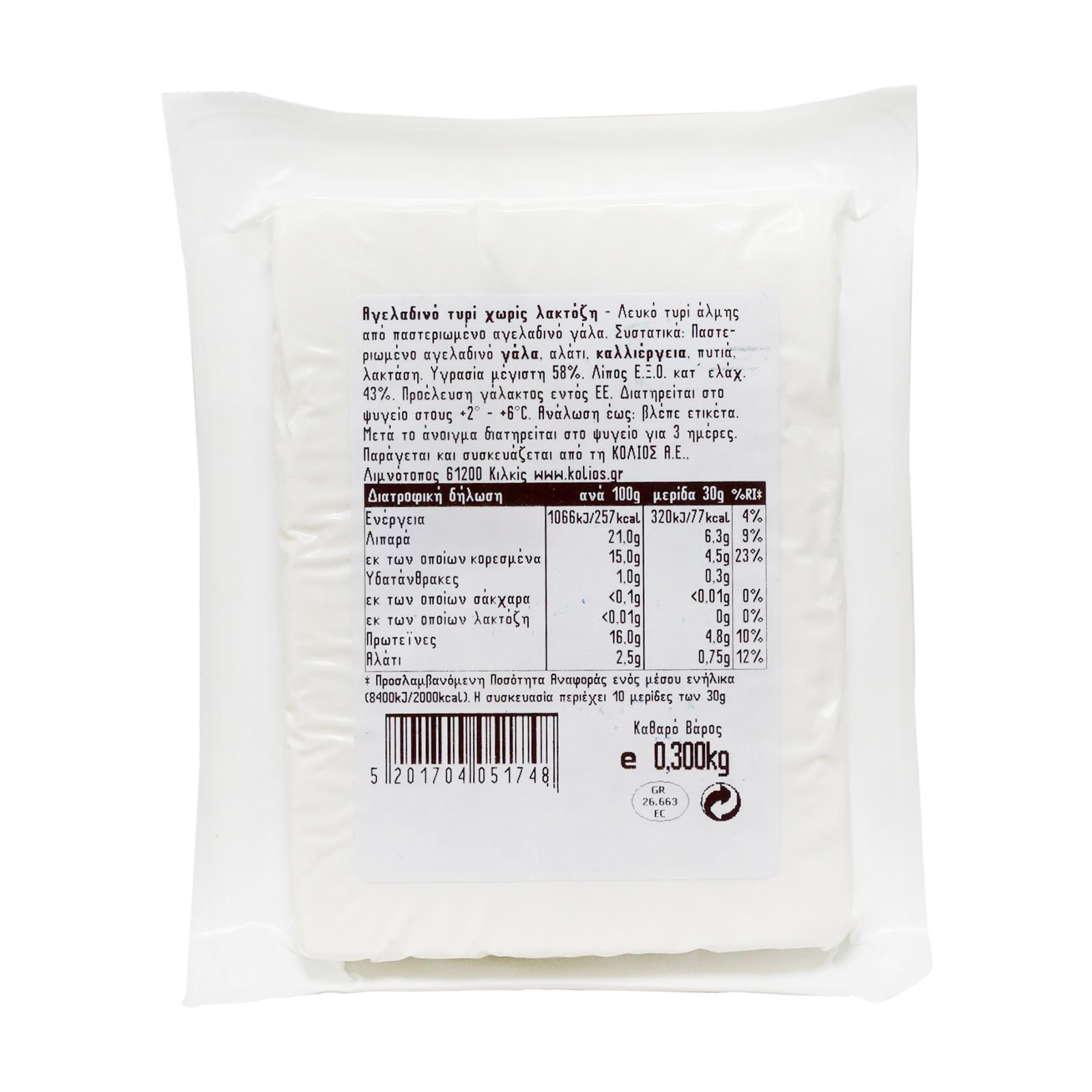 Λευκό Τυρί Άλμης KOLIOS Σπιτικό Αγελαδινό Χωρίς λακτόζη 300g